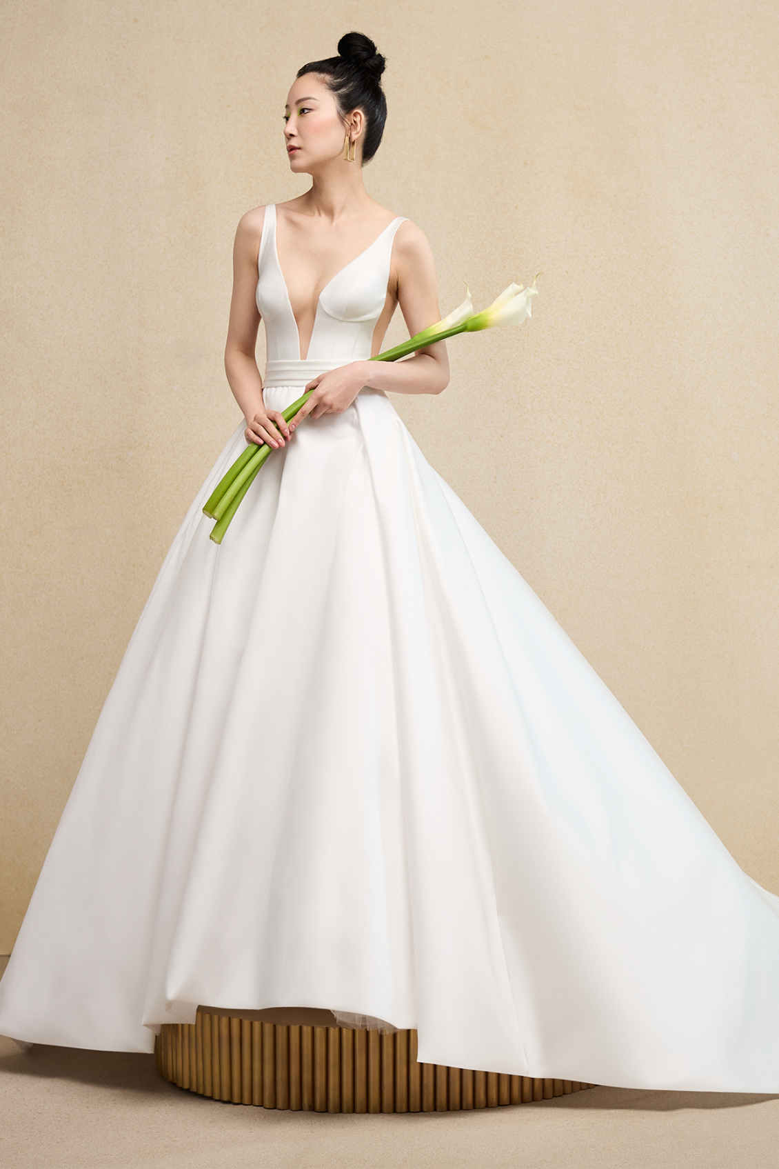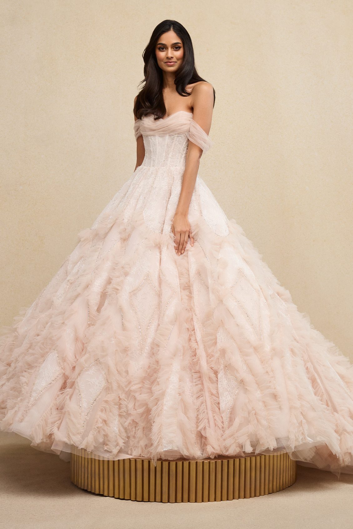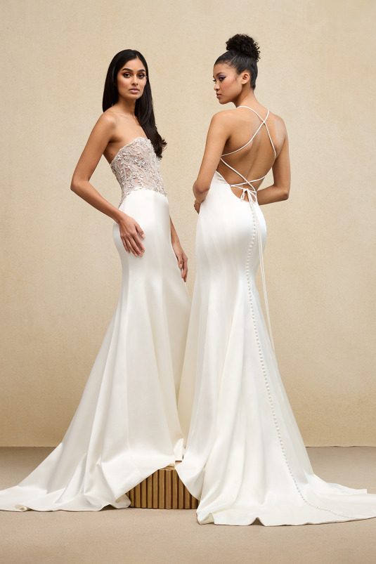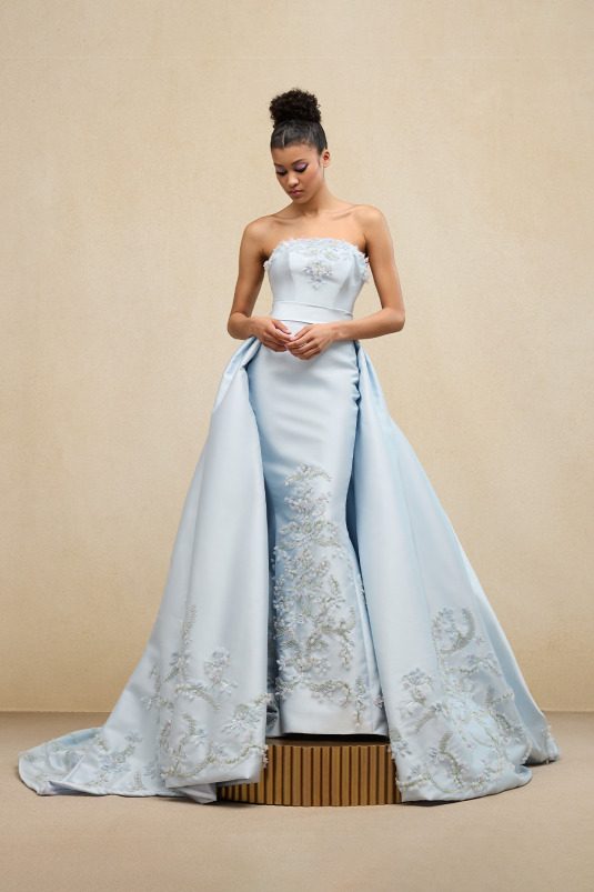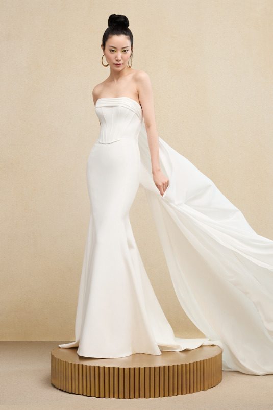 The 54th collection from Ines Di Santo’s namesake line, titled “In Full Bloom,” replicates the beautiful pastels and textures of springtime garden. “Every bride should feel like a flower in full bloom, beautiful and perfectly unique.” — Ines Di Santo