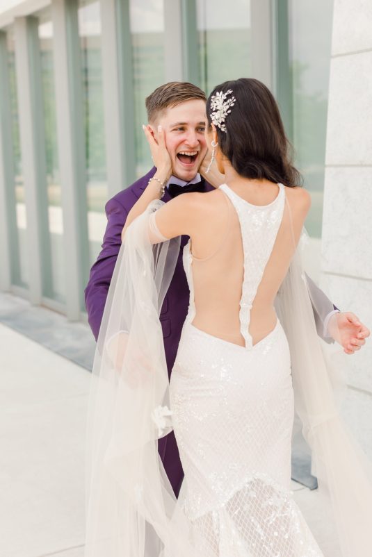 Amanda had worn a custom racerback dress that fit her ostomy bag to her twelfth-grade prom. So when she found a GALIA LAHAV wedding dress in a similar style, she knew it was meant to be! The team at