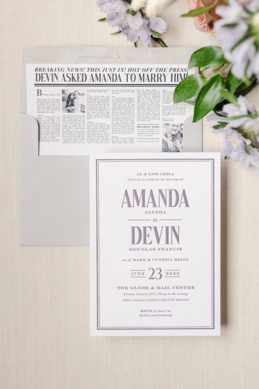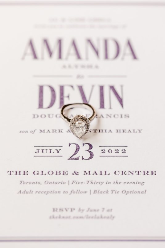Amanda Leela & Devin Healy first met as two teen golfers trying to make some drives and putts at a golf academy. They admired each other from afar, but the romantic timing wasn’t right. A decade later, they sparked a conversation during a TIFF event hosted by Devin’s brother. When Devin mentioned his passion for food, it was game over for Amanda. They dated long-distance for the first year and a half of their relationship before career moves allowed their relationship to grow.