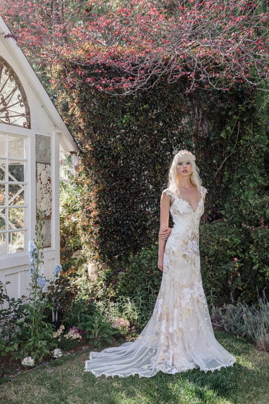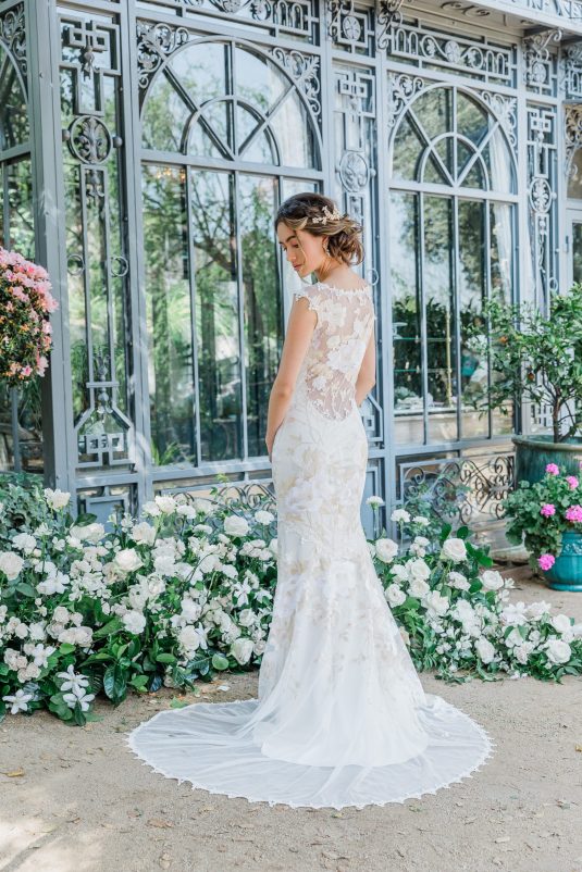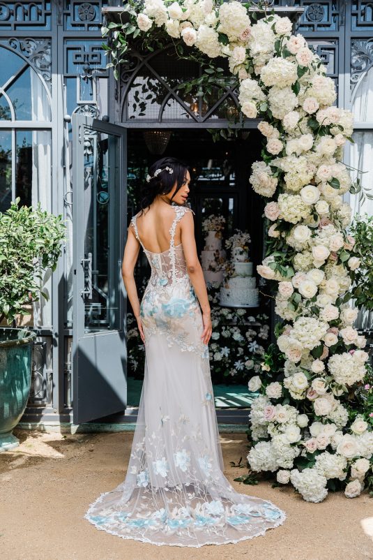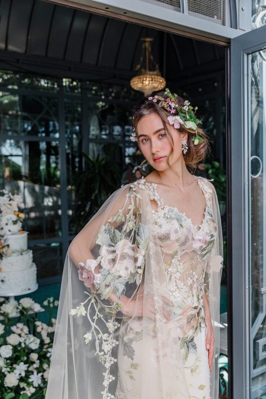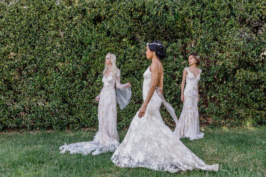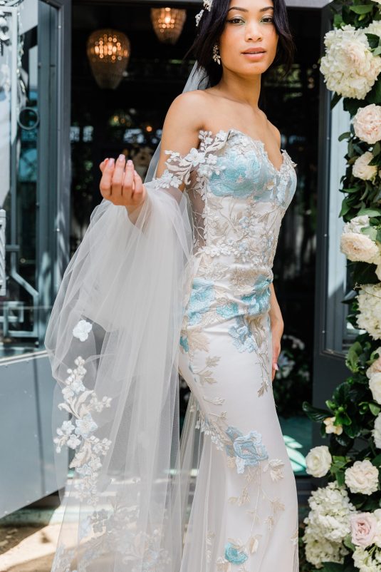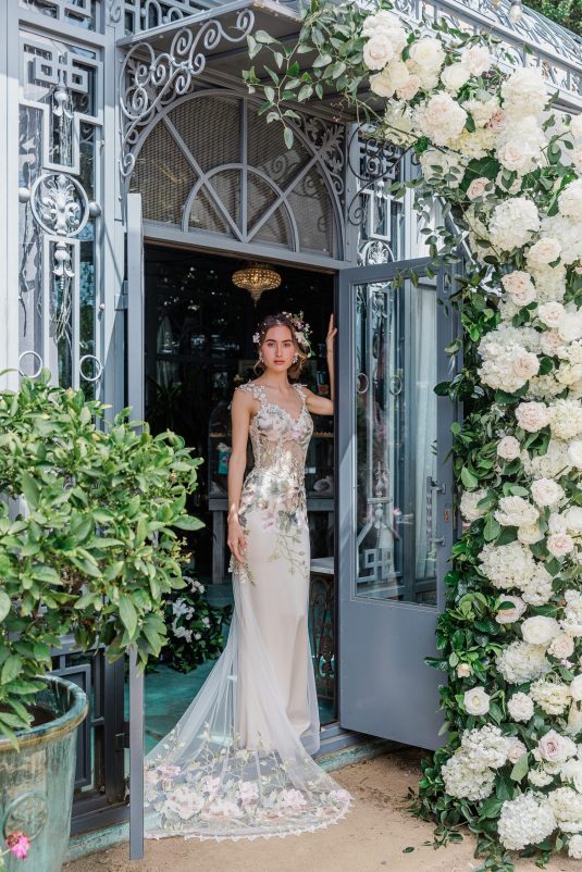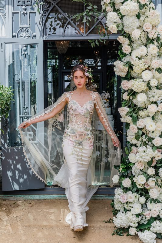 Inspired by the timeless beauty and symbolism of flowers, the Claire Pettibone Spring/Summer 2024 Collection is fittingly titled “Les Fleurs” and full of floral lace, appliqués, and the pastel hues of springtime blooms.
