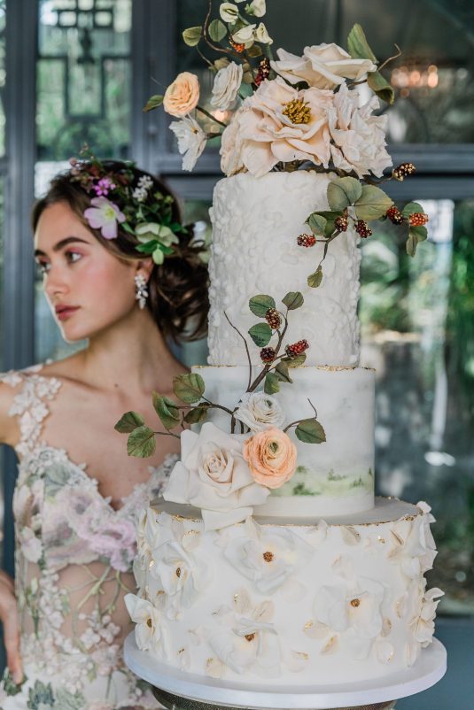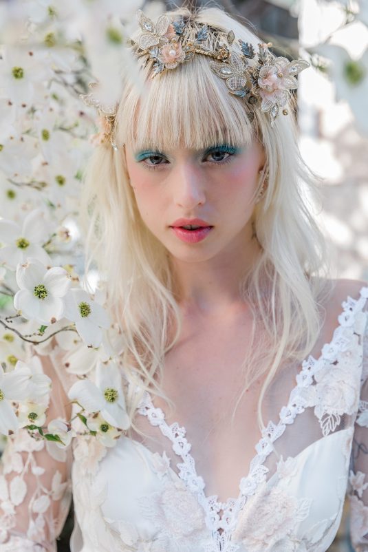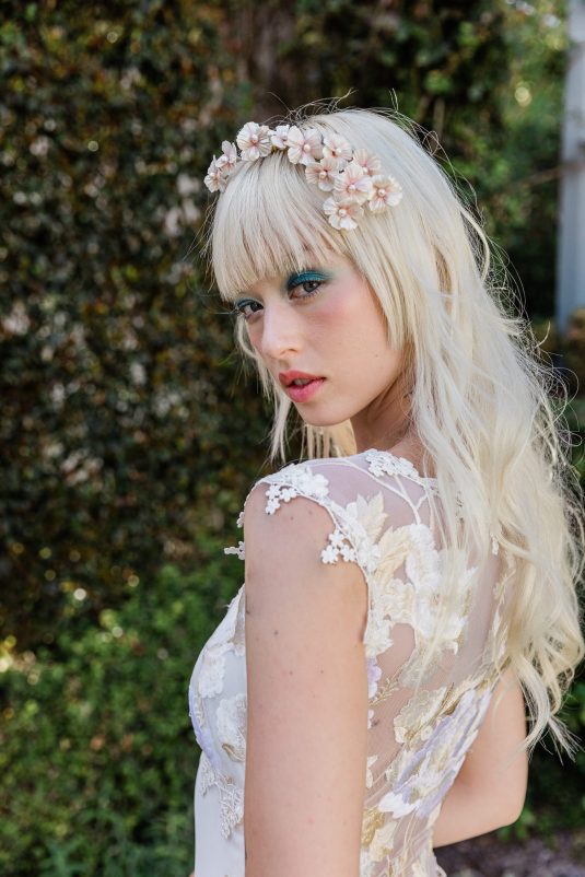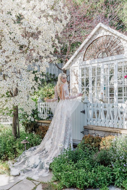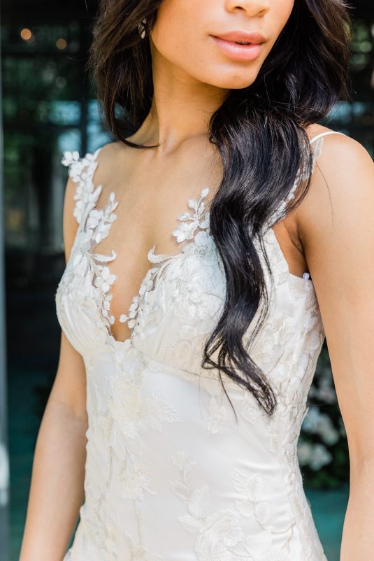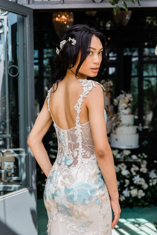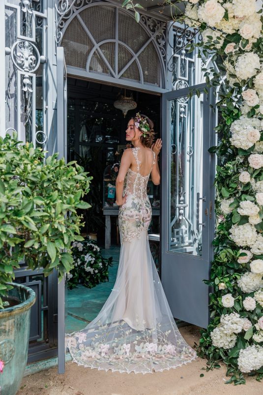 “I am constantly inspired by nature, and this season I let my botanical impulses run wild. Cherry blossoms, roses and peonies appliquéd by hand, layers of silk and tulle, and intricate branches and leaves come to life in couture gowns. Having just returned from a long-awaited visit to Japan just in time for cherry blossom season, my mind is awash in floating petals! Most of my brides are married in outdoor settings, and my vision this season is to transform them into the most unforgettable floral goddesses.” shares the designer.