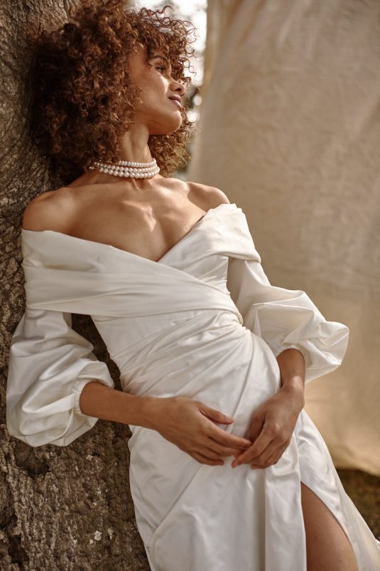 “The ‘Moonlight’ collection captures the enchanting allure of love, intertwining the anticipation of your wedding day with the serene ‘moment before.’ Each gown is designed to portray these feelings, resulting in a collection that is both emotional and tangible.” shares designer Katherine Tash.