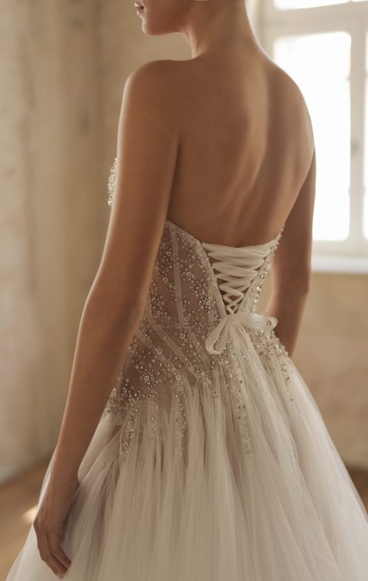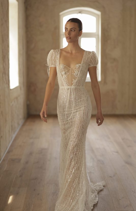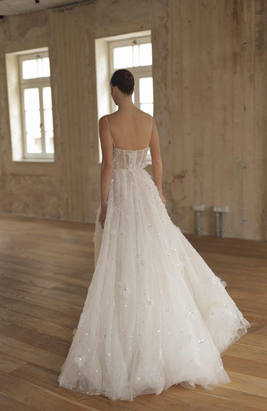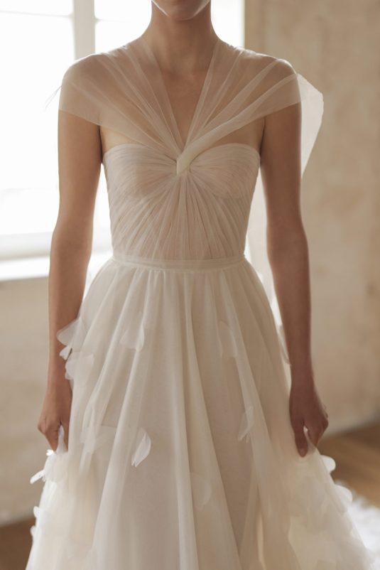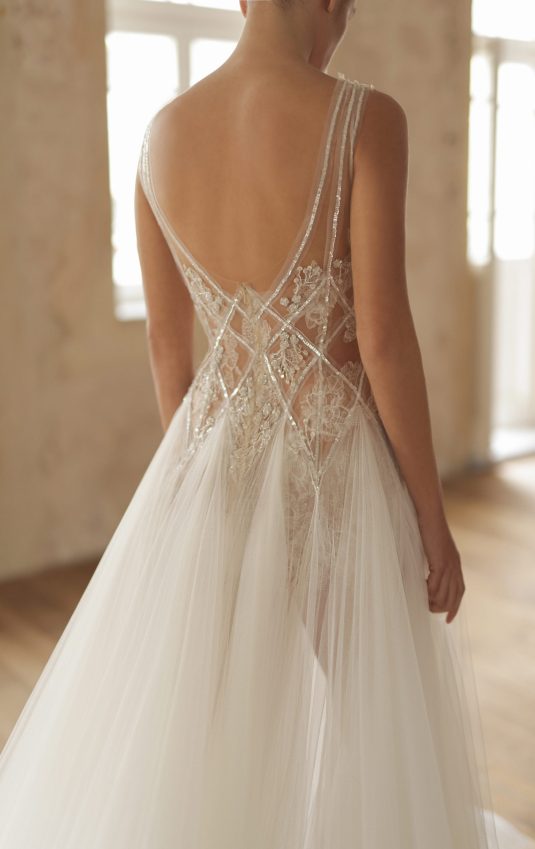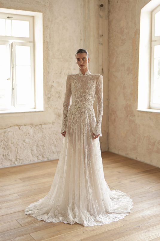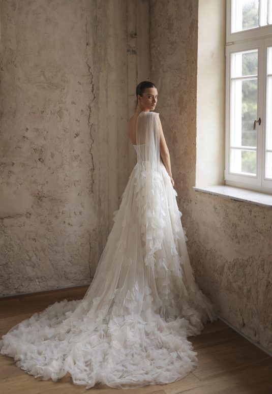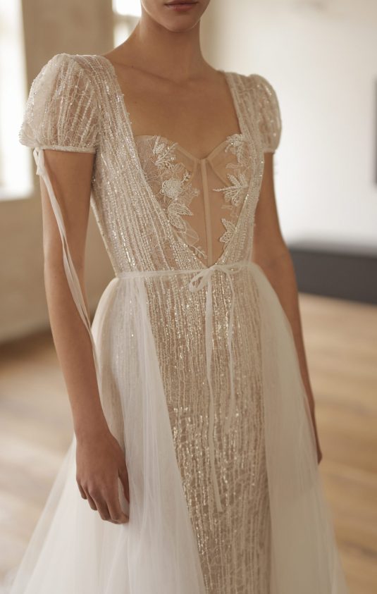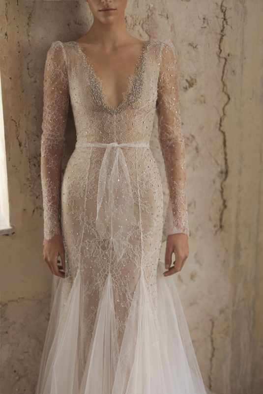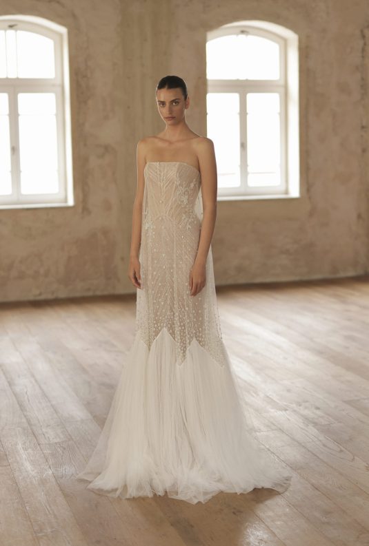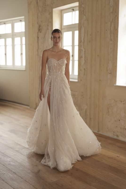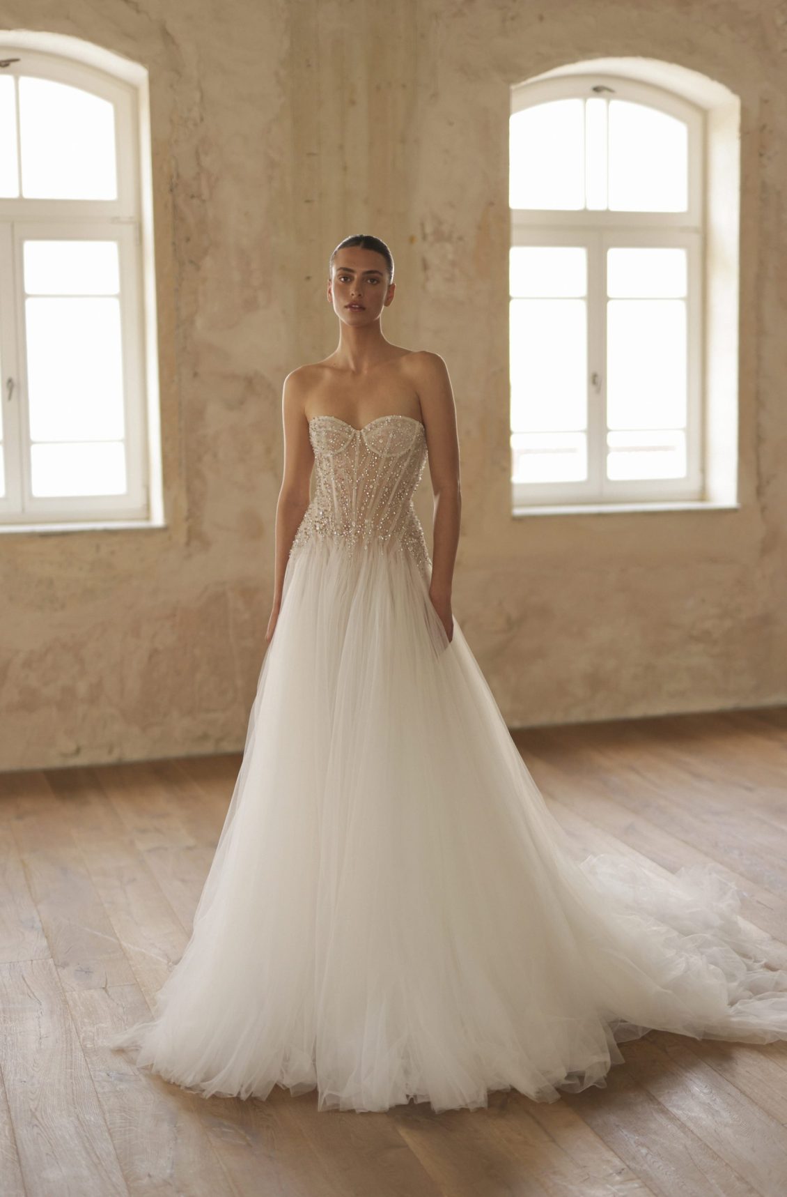 The Liz Martinez Spring/Summer 2024 Collection, “La Dimora,” was made for the bride who loves the sheer gown trend! We’re obsessed with the beautiful Swarovski-studded lattice pattern of sheer ribbons on the Dahlia gown. Find your favourite below!
