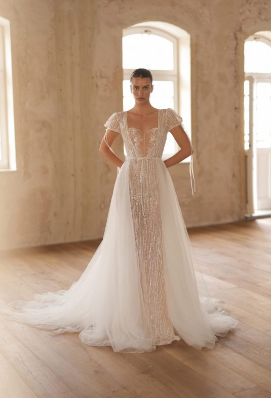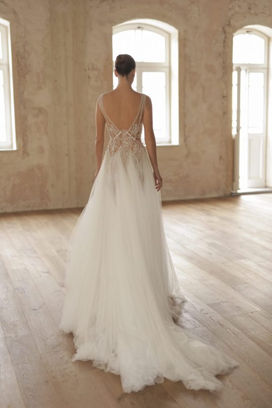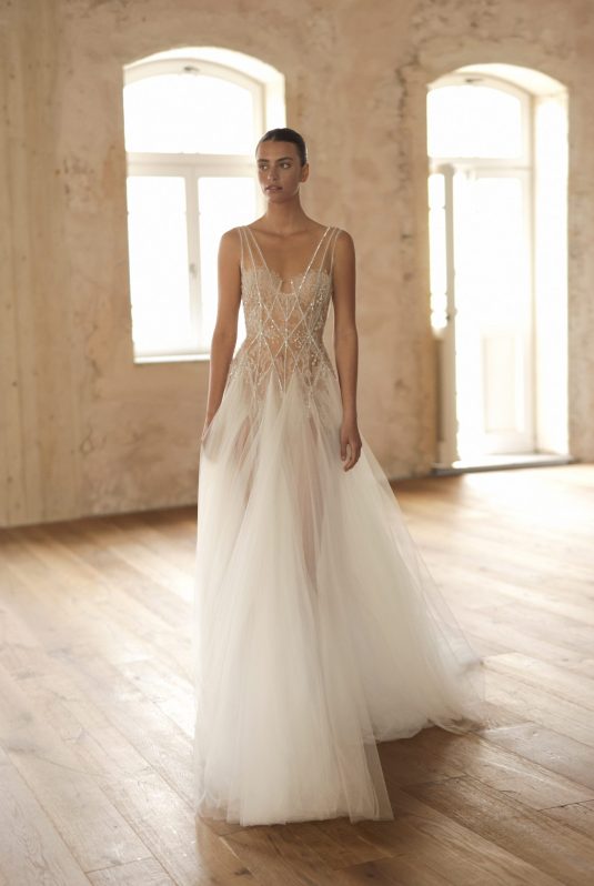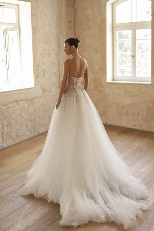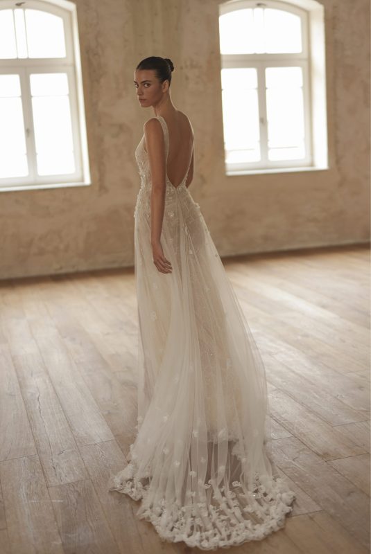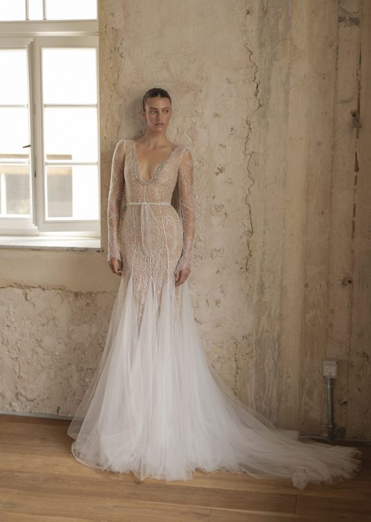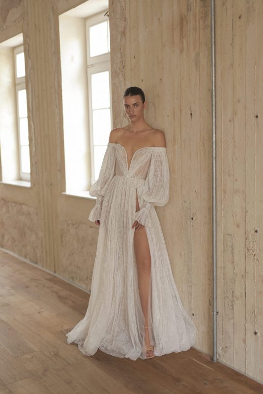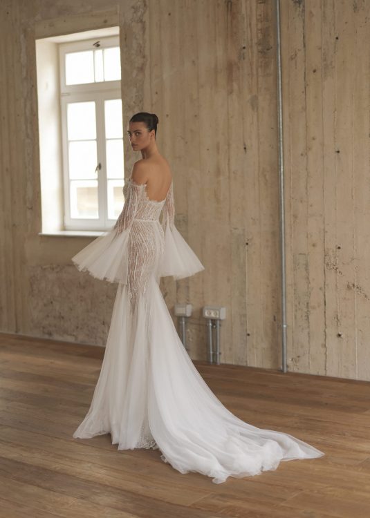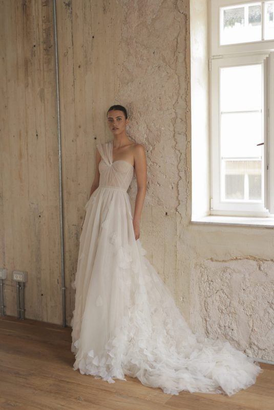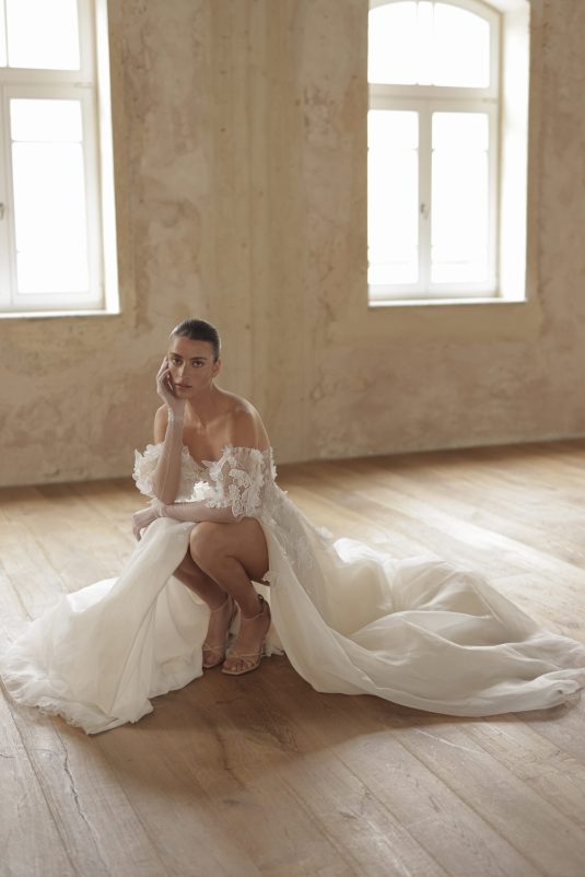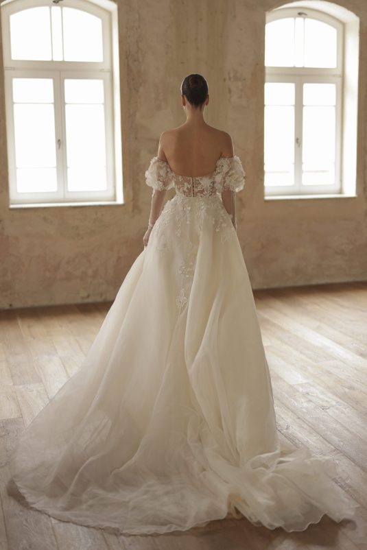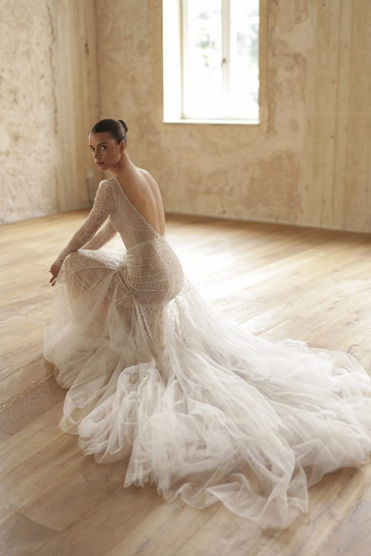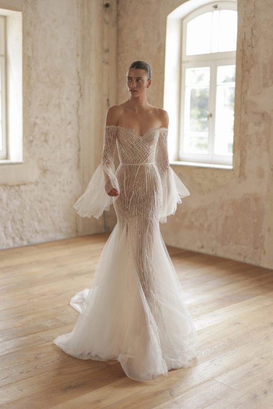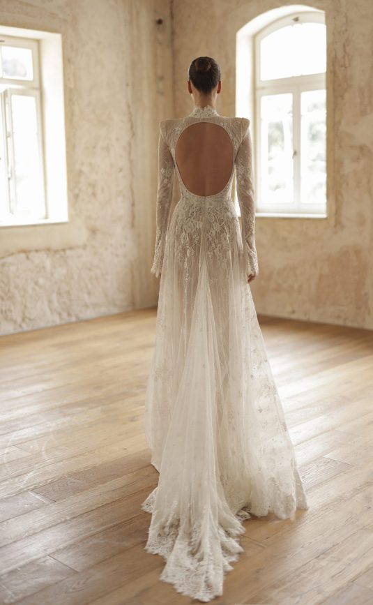 The Liz Martinez Spring/Summer 2024 Collection, “La Dimora,” was made for the bride who loves the sheer gown trend! We’re obsessed with the beautiful Swarovski-studded lattice pattern of sheer ribbons on the Dahlia gown. Find your favourite below!