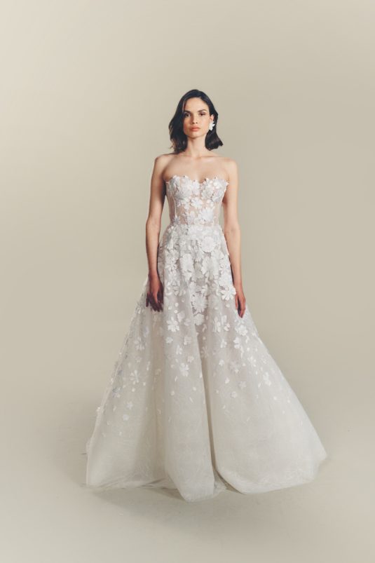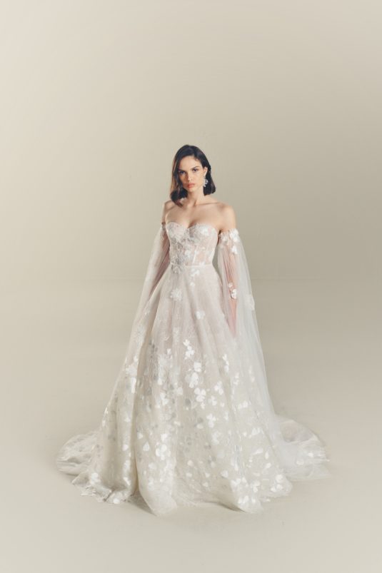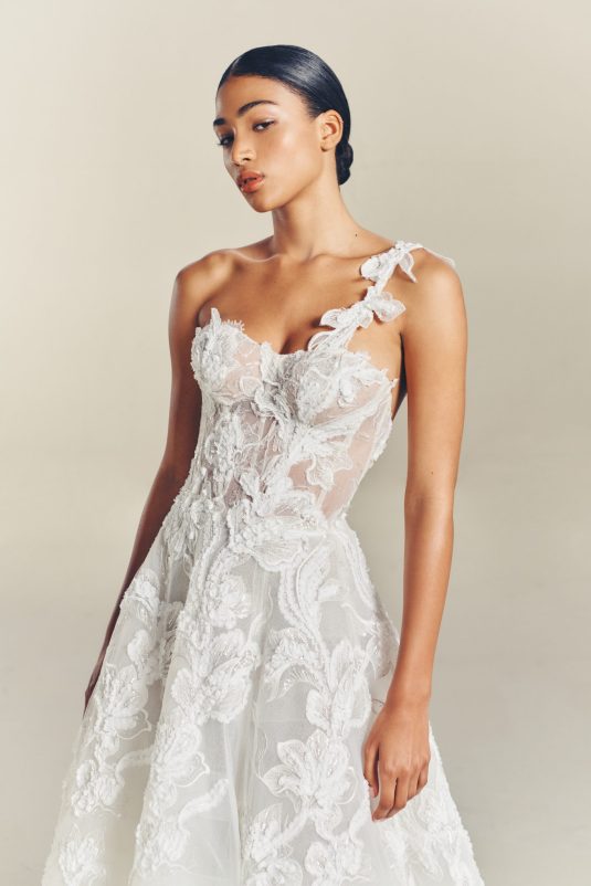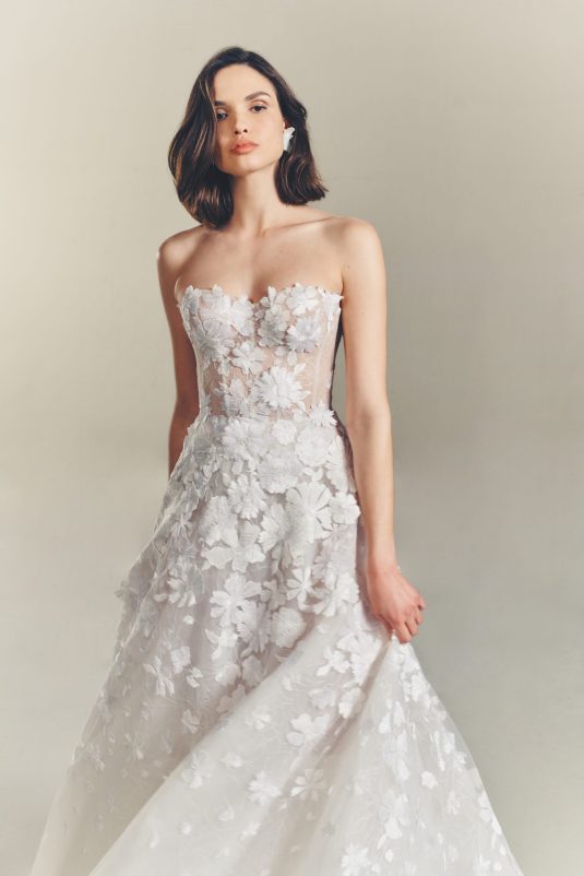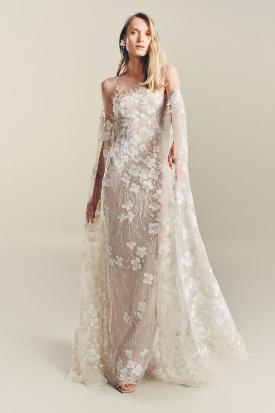 Comprised of thirteen beautiful gowns featuring trends like 3D florals and capes, “Awakening,” the Haute Couture Spring/Summer 2024 Bridal Collection from Mira Zwillinger, is all about inner beauty and celebrating strength and potential of one’s true essence.