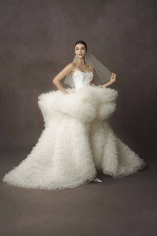 The Spring/Summer 2024 Bridal Collection from Nicole + Felicia is absolutely breathtaking! From pearl-studded to feathered, ruffled to bow-tied, these stunning gowns showcase some of our favourite bridal trends of the season.