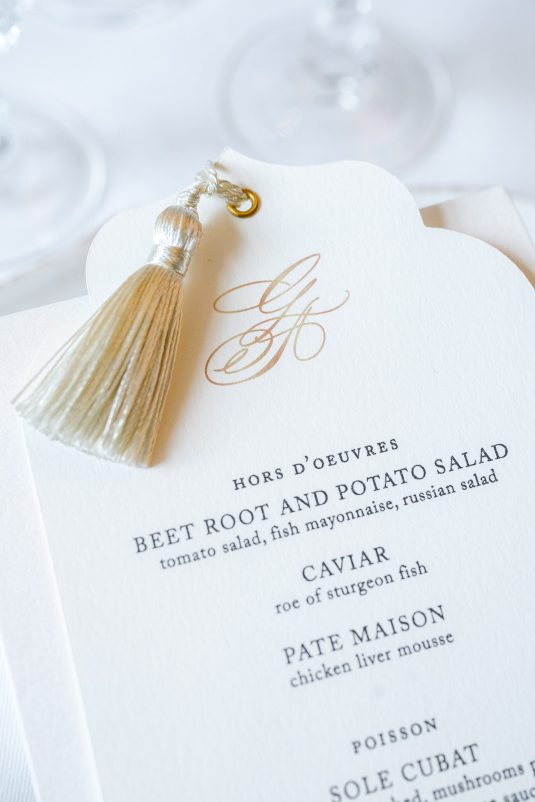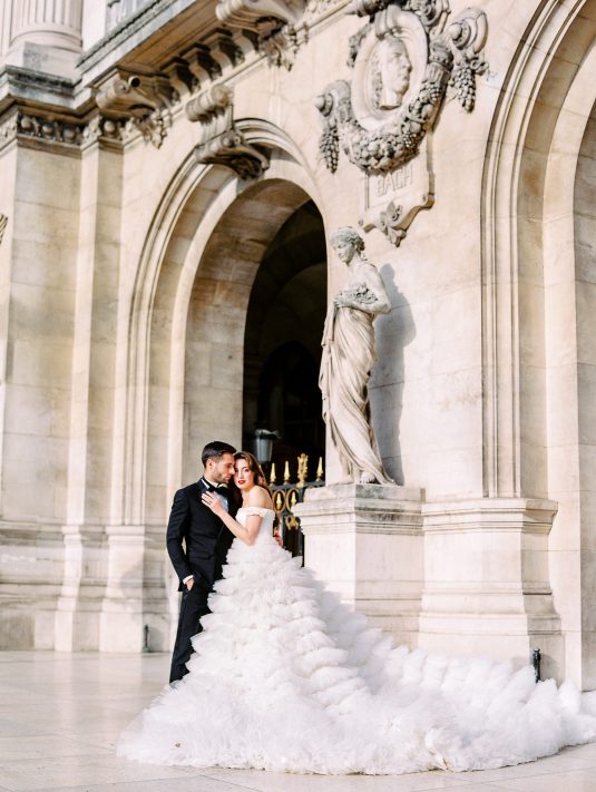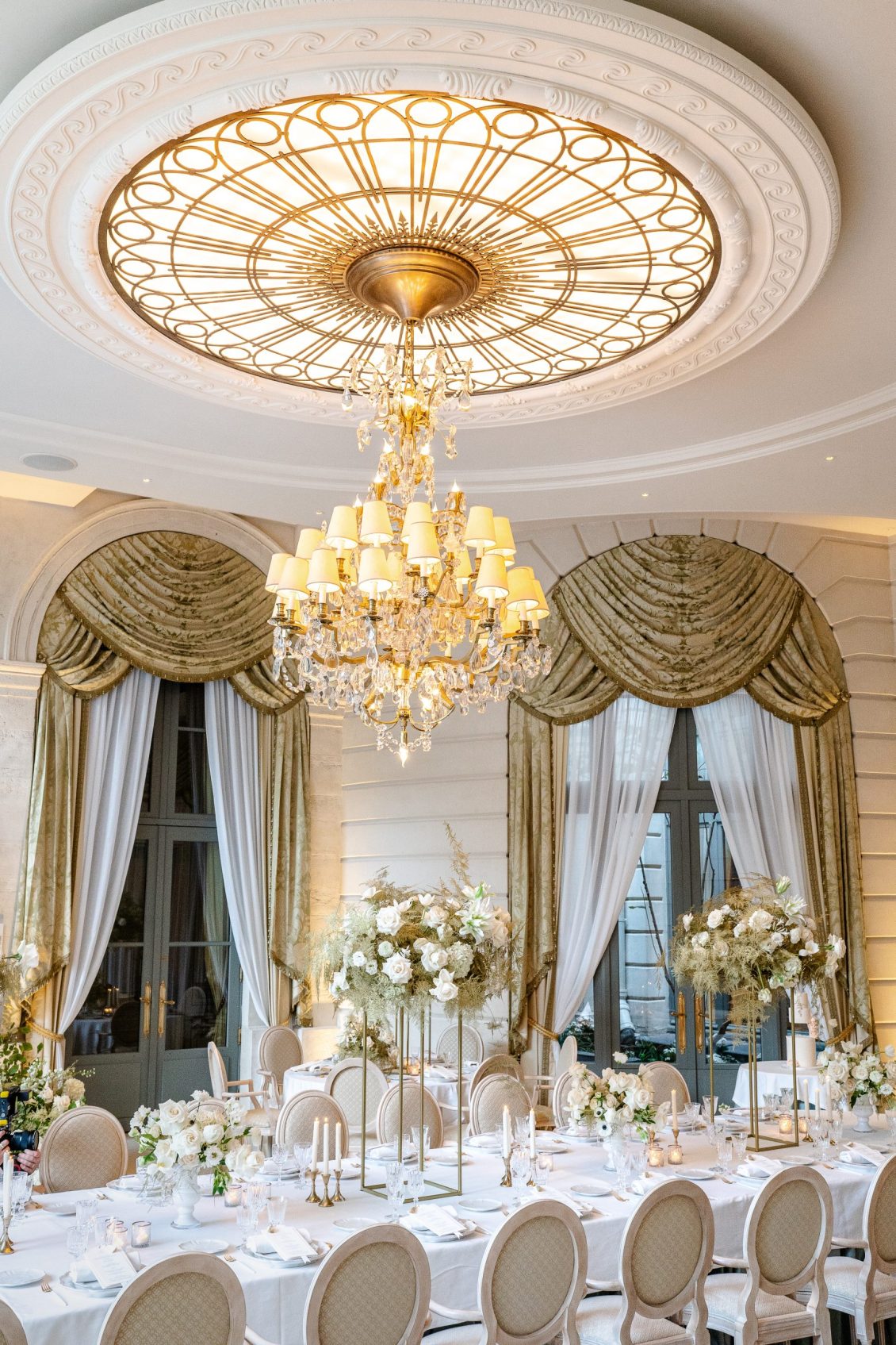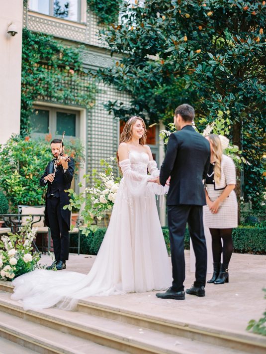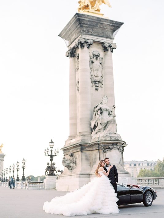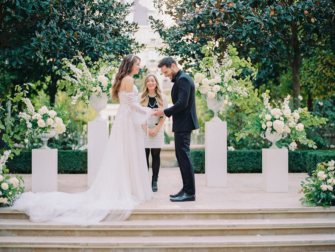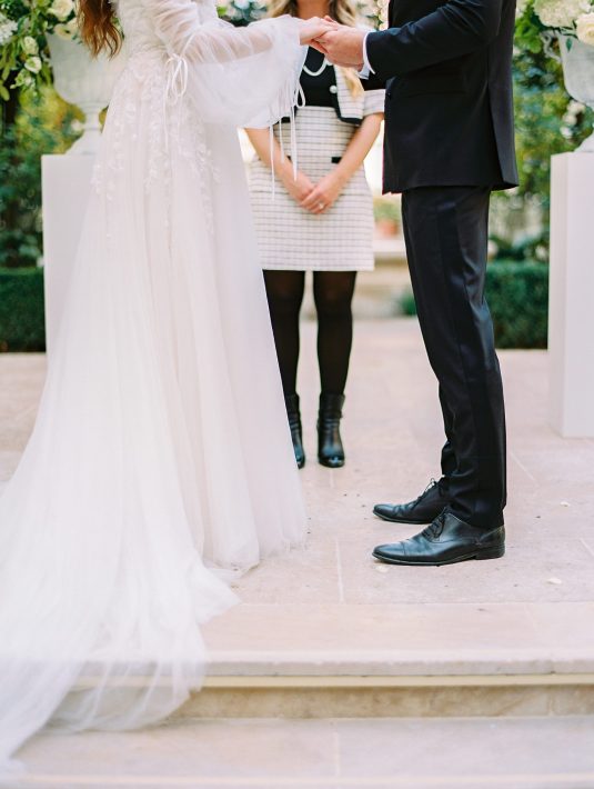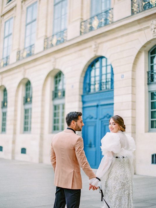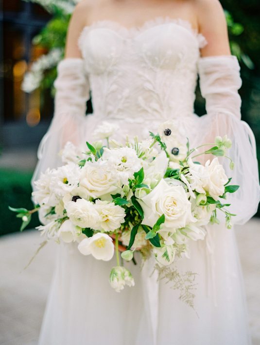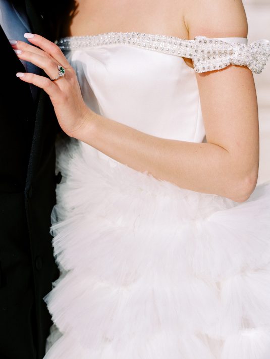 Bonjour, Paris! This styled shoot at The Ritz Paris takes design cues from Chanel, incorporating plentiful white florals and candles that smell just like Chanel #5 for a signature scent. The intimate wedding celebration is complete with live entertainment, including a violinist, a pianist, and a ballerina, as well as a several stunning fashion moments — because why settle for one look on the big day?