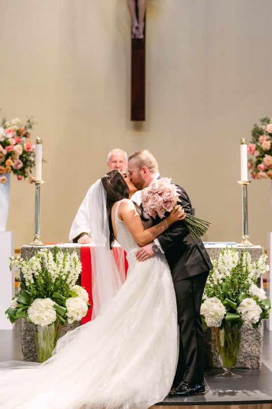 Melissa Martino and Gianfranco Fuoco were married on June 4, 2022, in Vaughan, Ontario. The ceremony was held at St. Peter’s Catholic Church, the same church where Gianfranco’s parents were married years earlier. A fairytale garden-themed wedding reception followed. Following the bride’s family tradition, the day started with a pre-ceremony celebration, complete with live entertainment, to welcome guests at Melissa’s parents’ house. This was an opportunity for all to mingle, enjoy refreshments and get a first look at the bride in her wedding dress!
