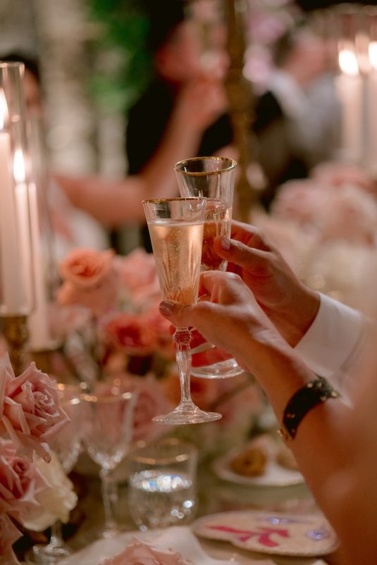 In the evening, the wedding moved to the hotel’s crypt for a romantic candlelit reception and a champagne toast to the newlyweds!