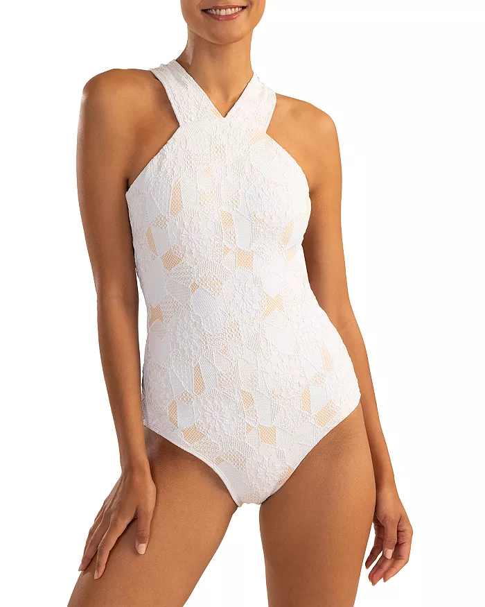 What would a bachelorette weekend wardrobe be without swimwear? This stunning one-piece by Shoshanna is the ultimate swimwear for the bride (plus the all-over lace is so SS24!).