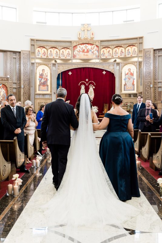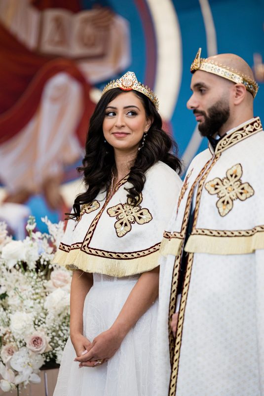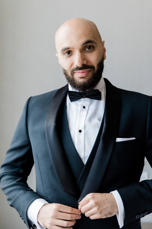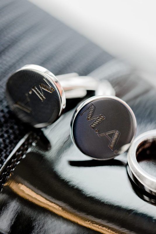 The bride’s nickname in Arabic means pearl, so as a special touch she wore pearl accessories and a pearl-studded manicure, while the groom wore a sentimental pair of cufflinks — they were the first gift the bride gave to him, and they feature engravings of his initials!