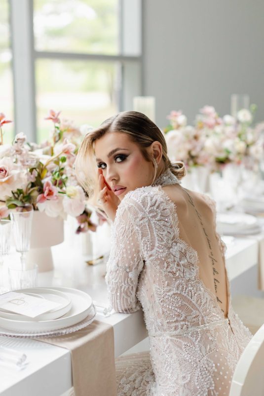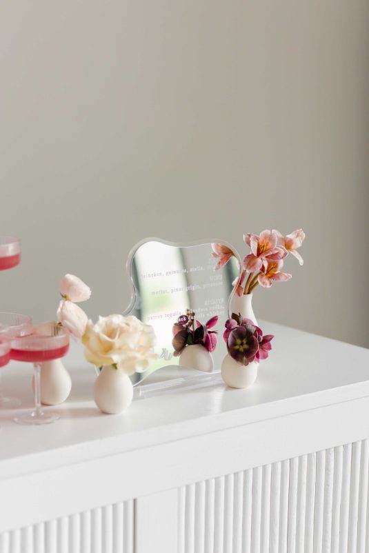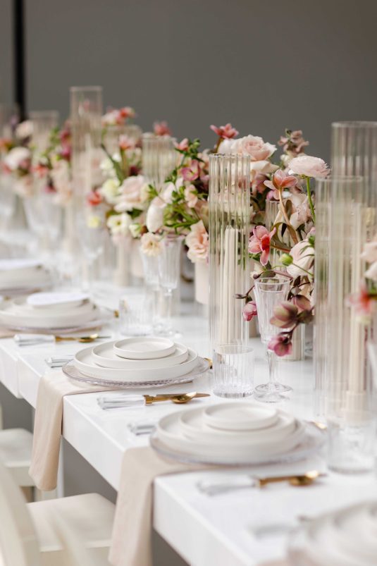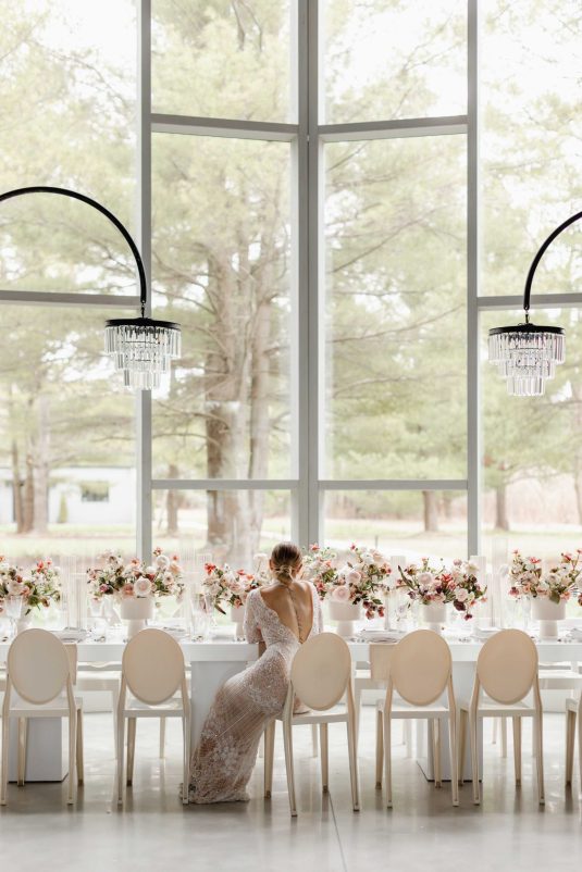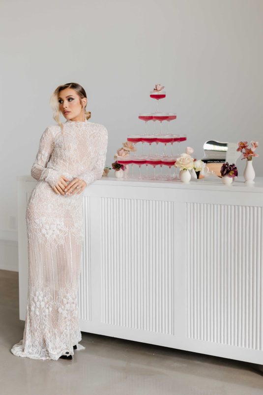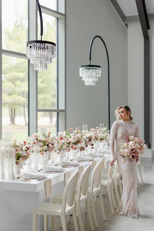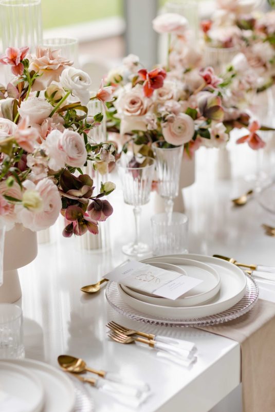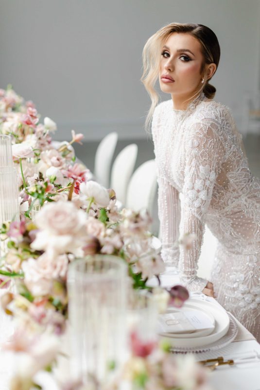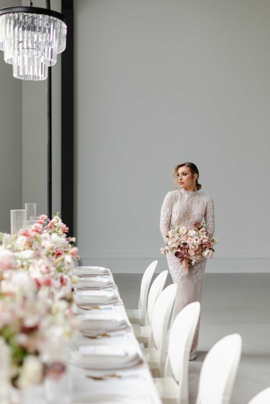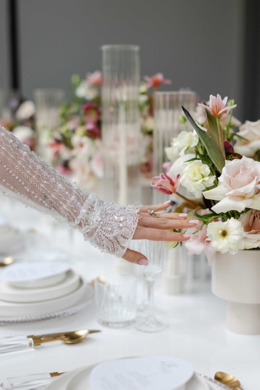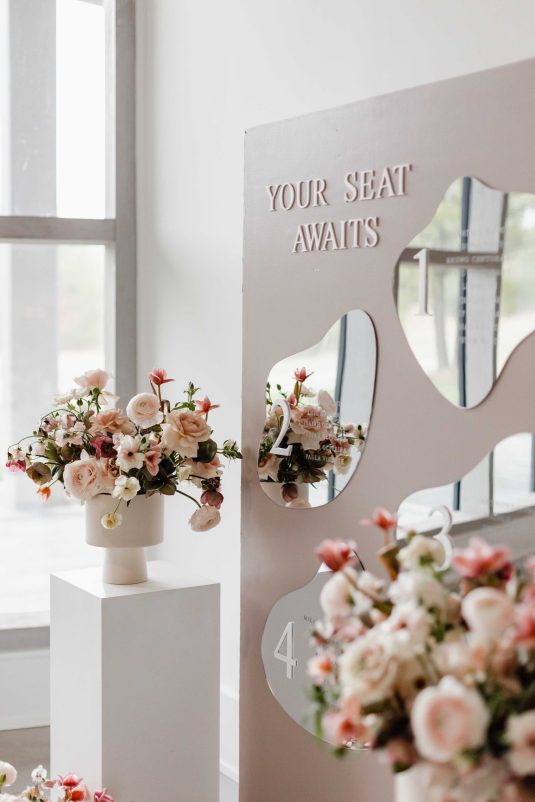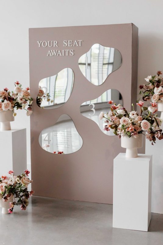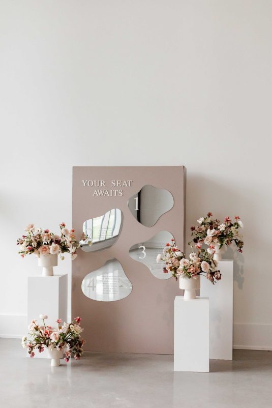 For the modern, elegant bride, this styled shoot presents refreshing and romantic wedding inspiration. Staying on-trend, it uses warm tones in contrast with luxe crystal decor and mirrored elements in playful organic shapes. Scroll to soak it all in!