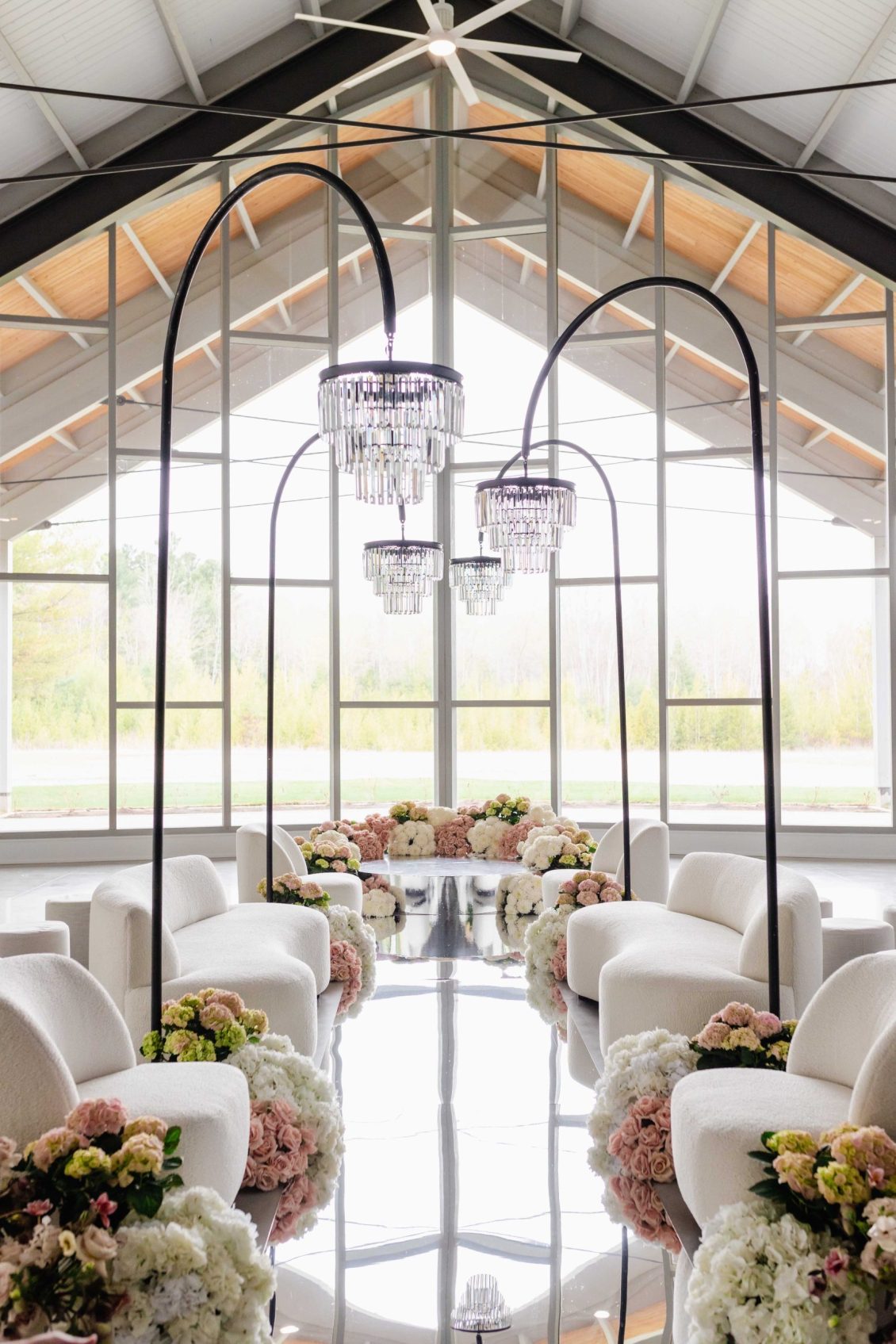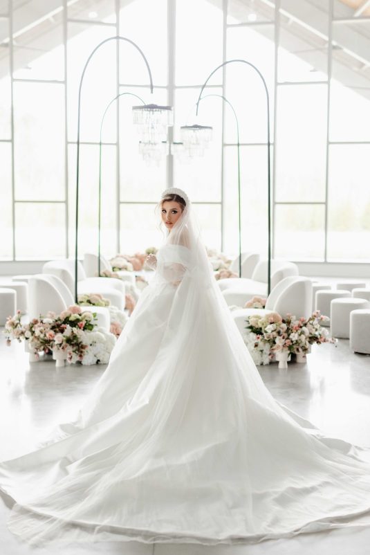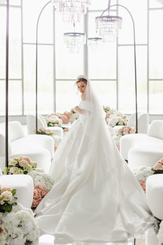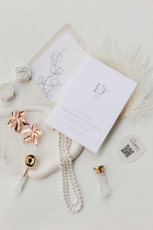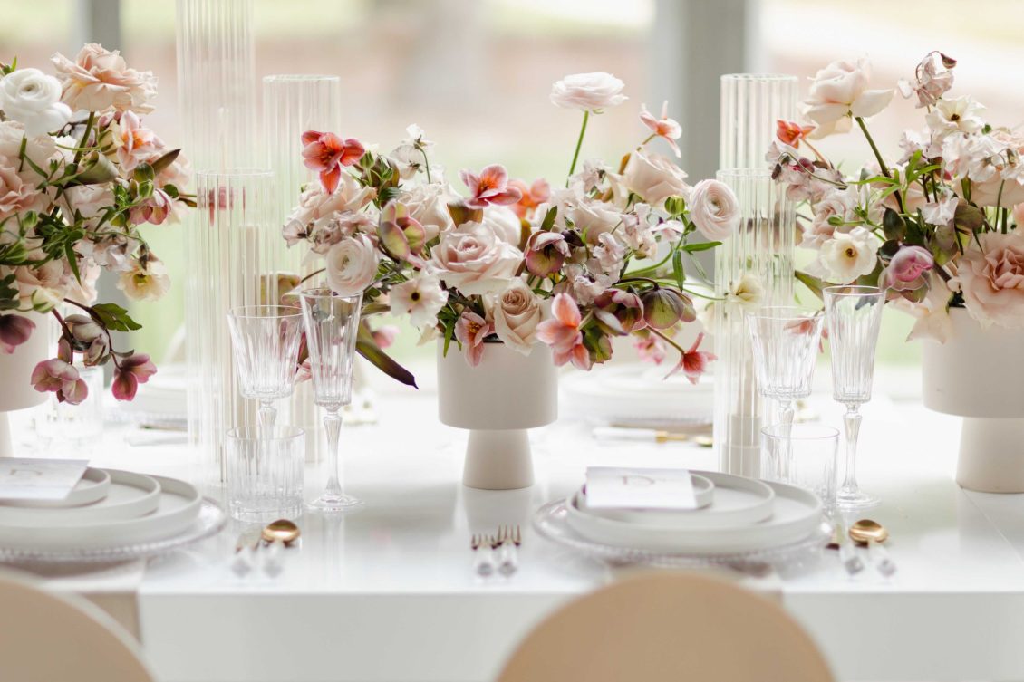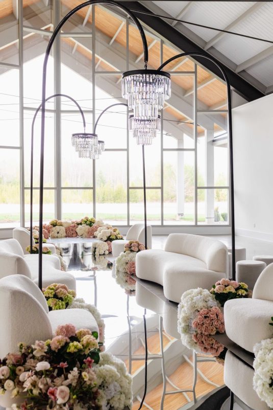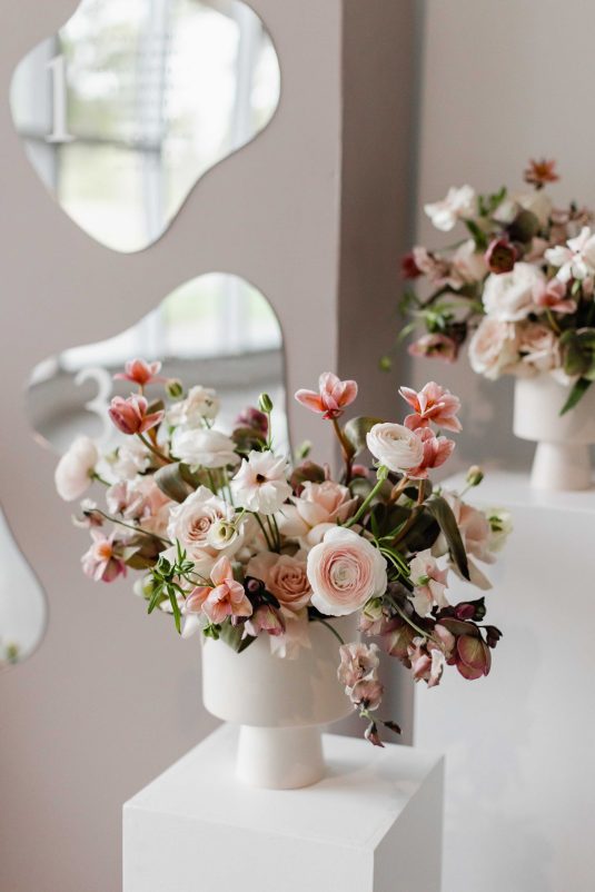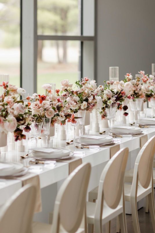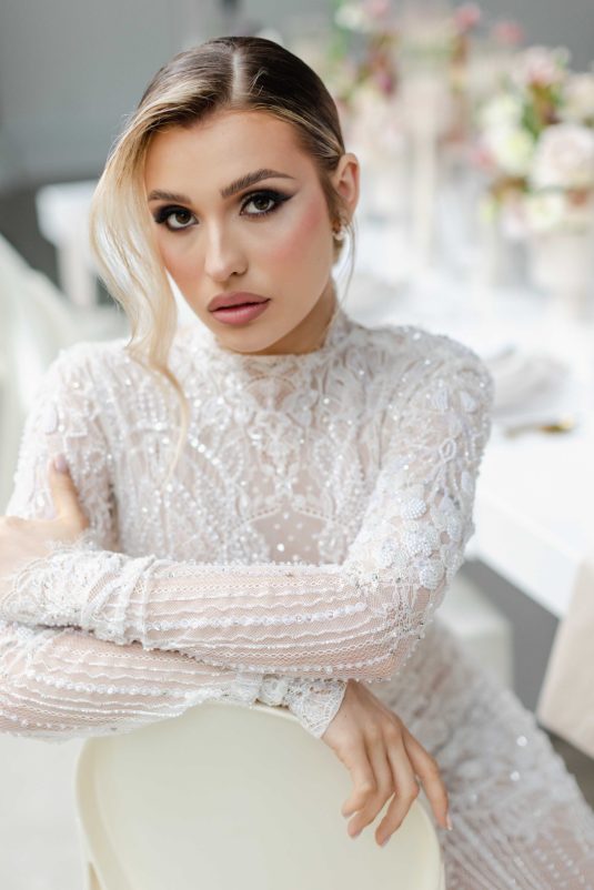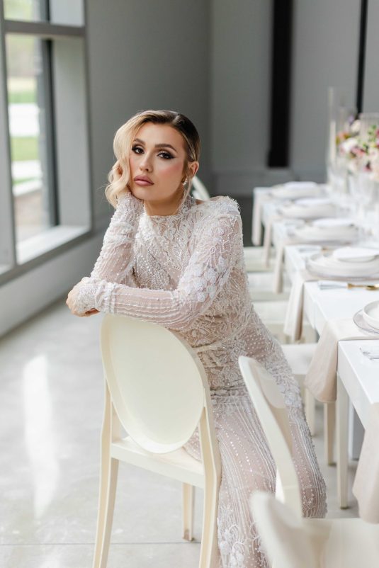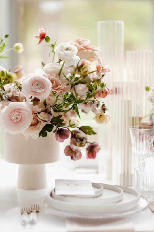 For the modern, elegant bride, this styled shoot presents refreshing and romantic wedding inspiration. Staying on-trend, it uses warm tones in contrast with luxe crystal decor and mirrored elements in playful organic shapes. Scroll to soak it all in!