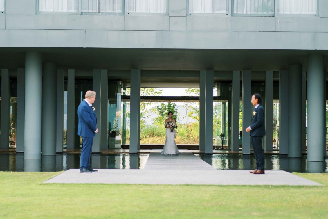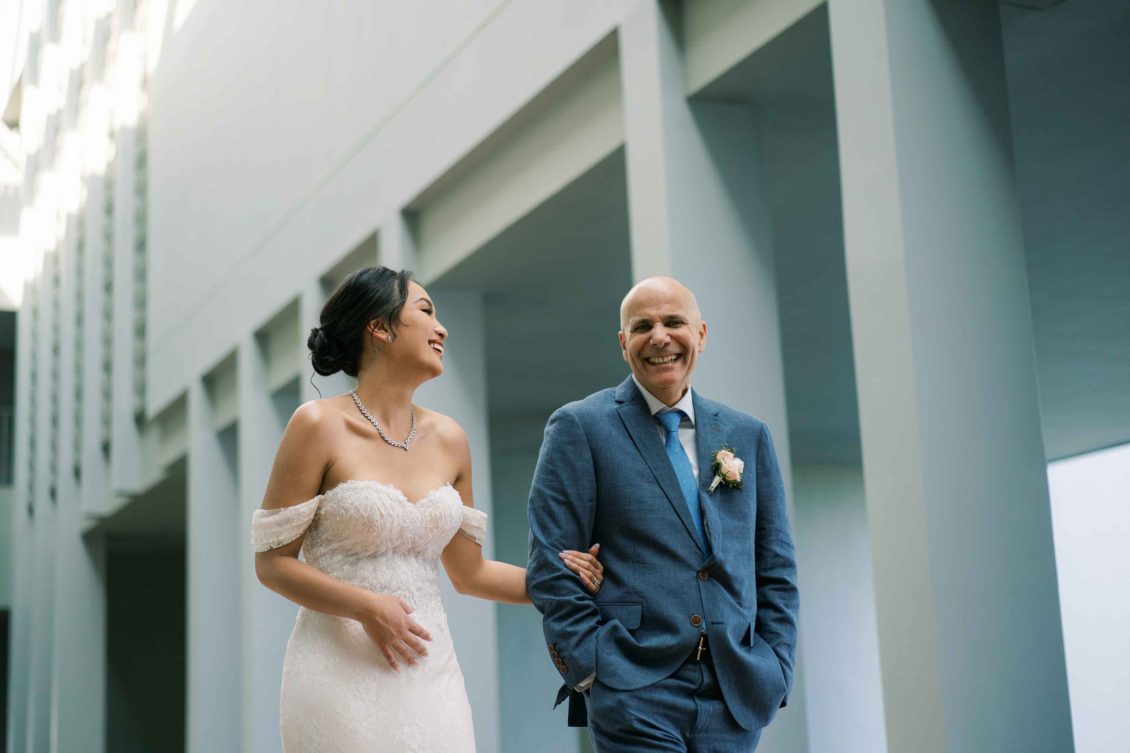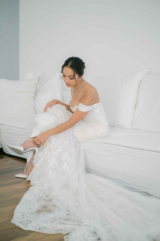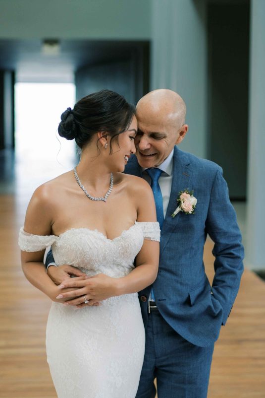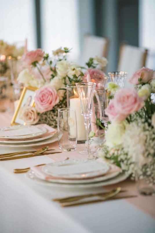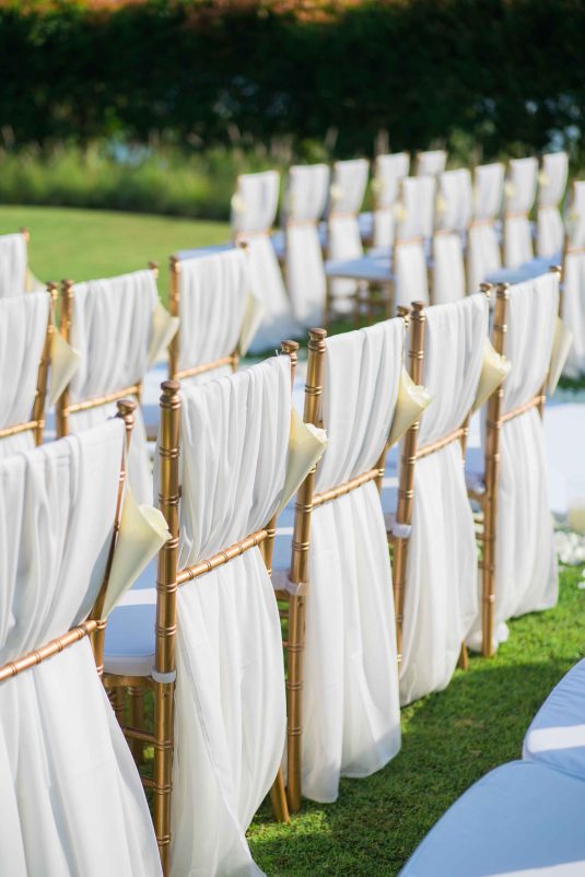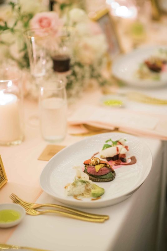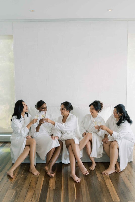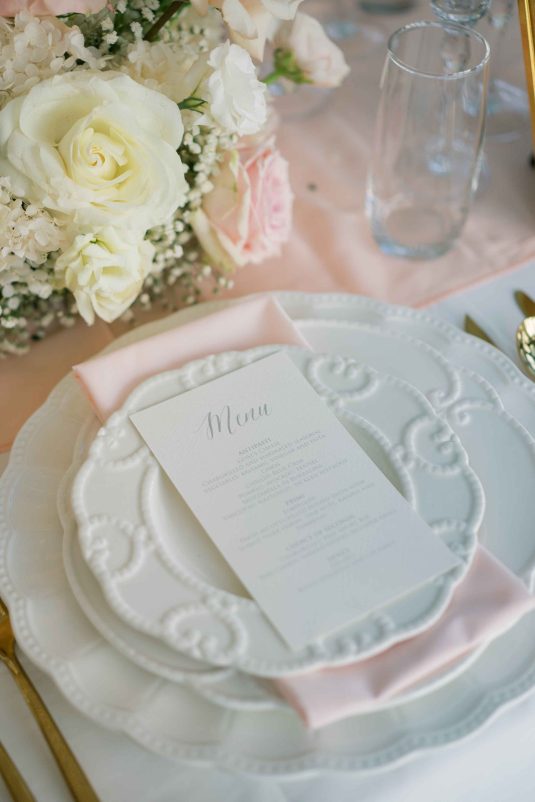 Bring on the romance! Pammy and Steven’s scenic cliffside wedding ceremony featured an oversized floral arch full of pastel pink and white roses, complimented by the bridesmaids’ blush-hued gowns. As an added touch, coconut drinks were offered as refreshments. The romance continued with the indoor reception, which was illuminated by a canopy of fairy lights resembling the twinkling of stars in a clear night’s sky.