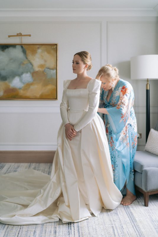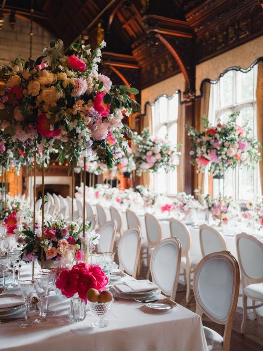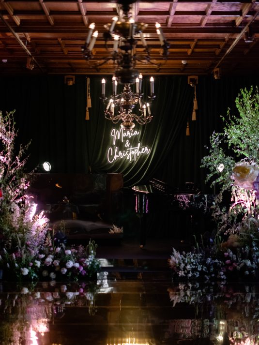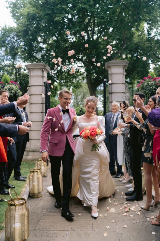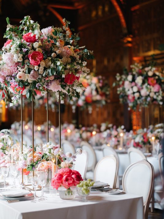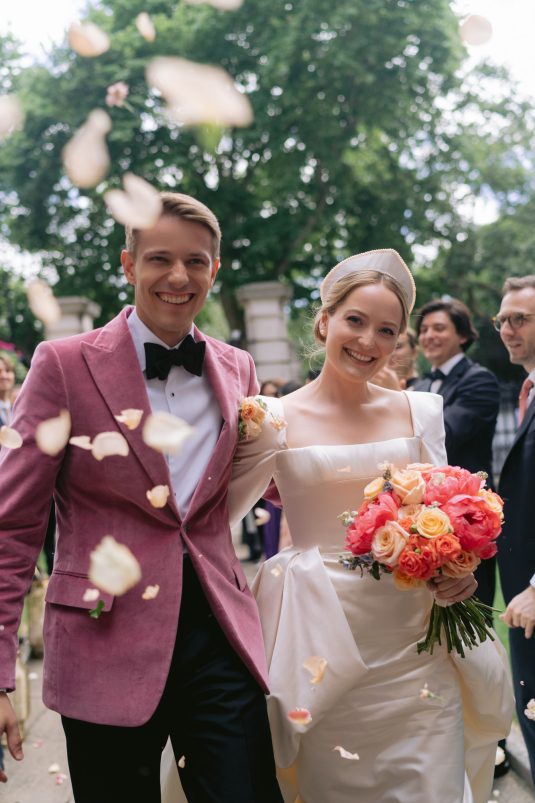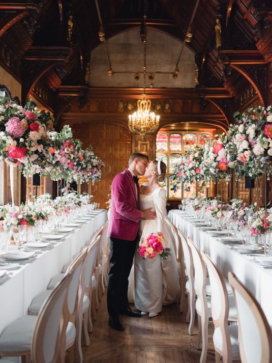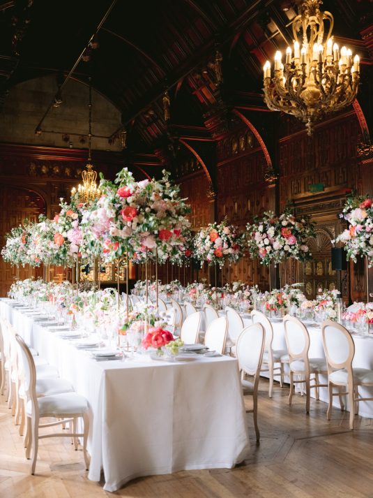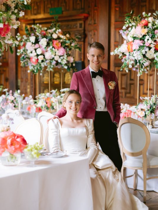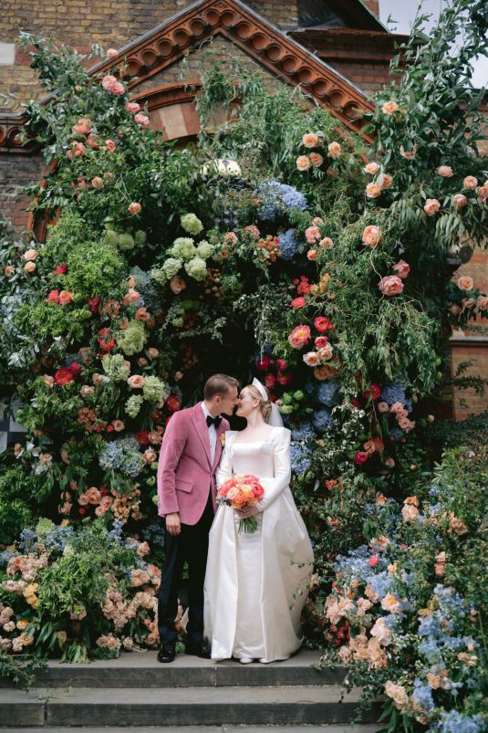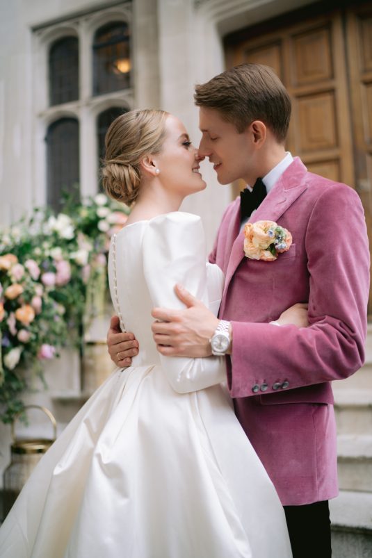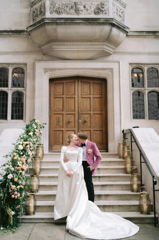 University sweethearts Maria and Christopher met in Hong Kong during their first internships. They celebrated their marriage eight years later with a whimsical garden wedding reception at Two Temple Place in London, England. With no shortage of fashion moments, a historic venue, and ethereal florals, admiring this wedding is like stepping into an oil painting!