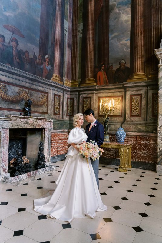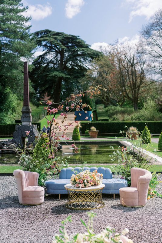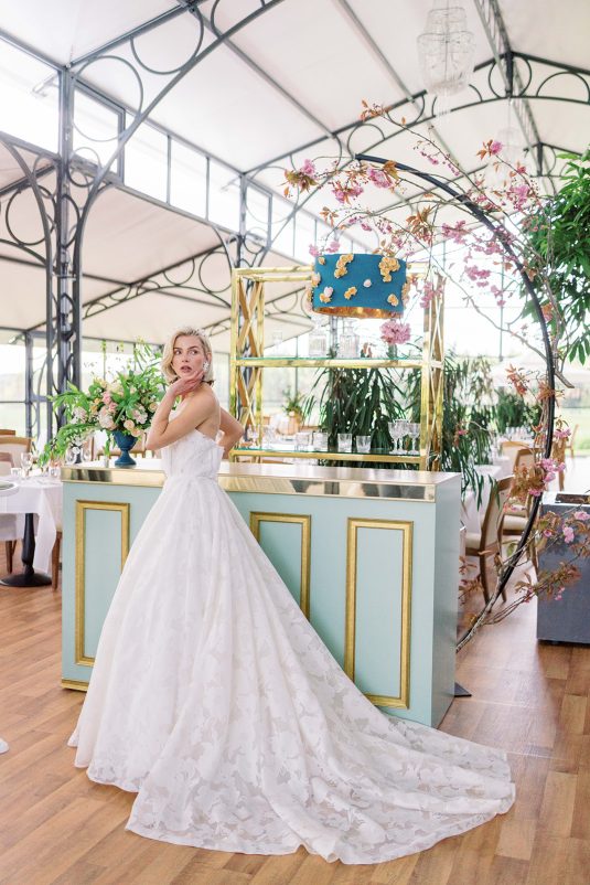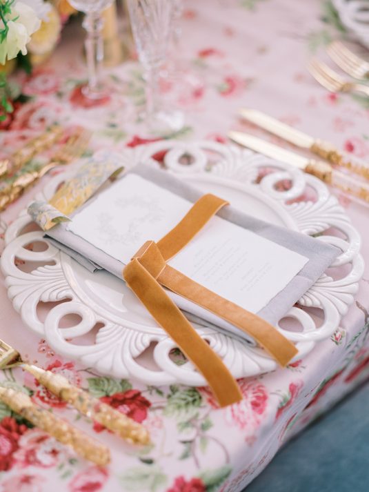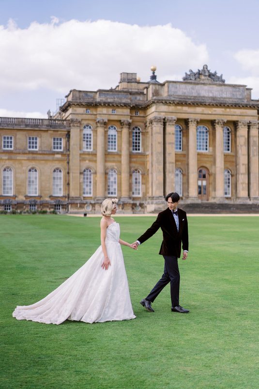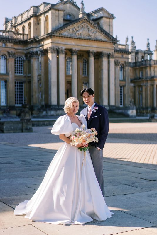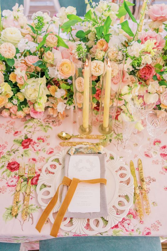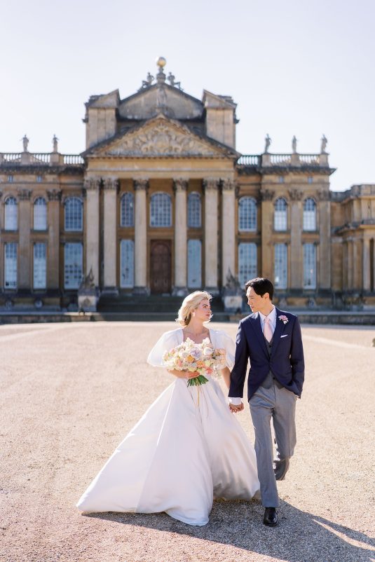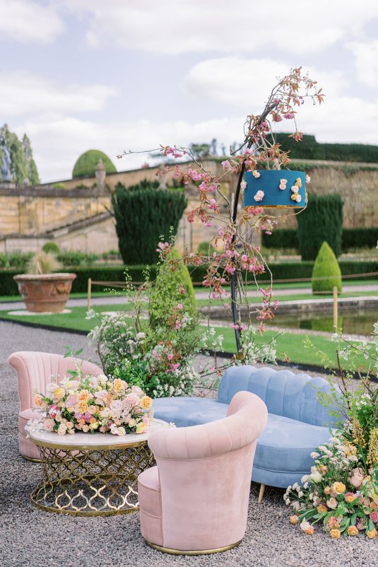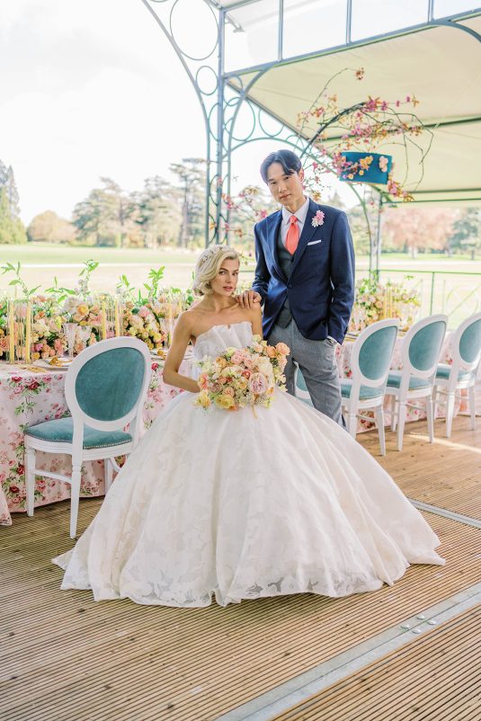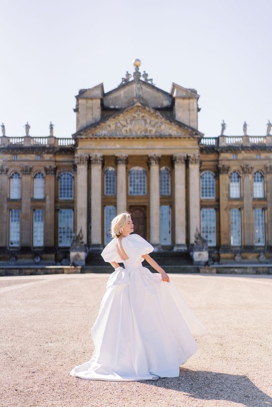 Inspired by the coronation of King Charles III, this styled shoot is nothing short of regal luxury infused with a breath of pastel modernity! Photographed at Blenheim Palace in Woodstock, England, you might recognize this monumental “country house” from Netflix’s binge-worthy Queen Charlotte: A Bridgerton Story! In addition to its current tv-fame, this palace has a notable history as it’s also the birthplace of Sir Winston Churchill. A masterpiece of English Baroque architecture built between 1705 and 1722, Blenheim Palace was designed by renowned architect Sir John Vanbrugh with its world-famous (and exquisite!) formal garden first designed by Capability Brown, one of the most prolific landscape designers of all time.