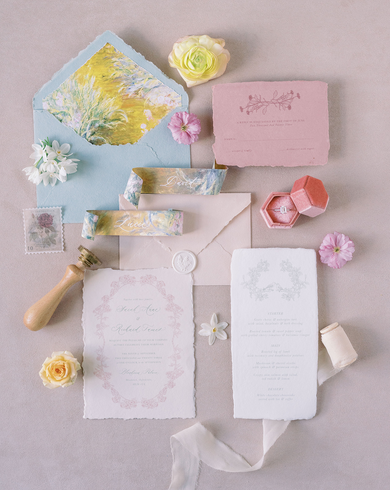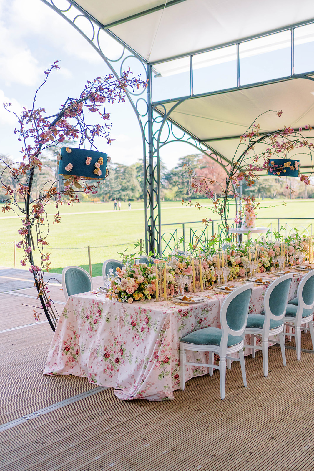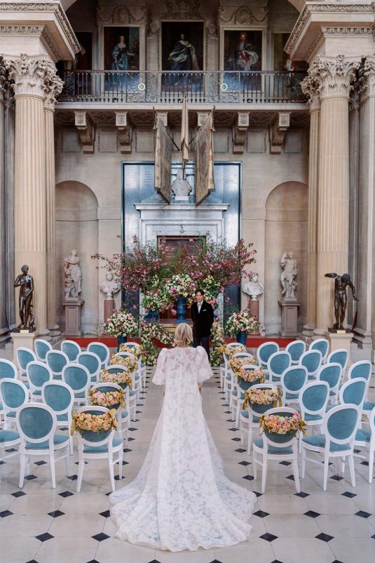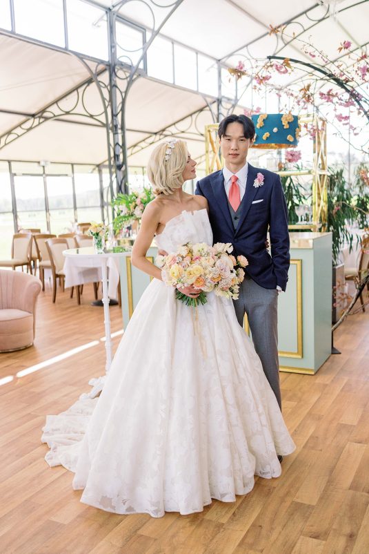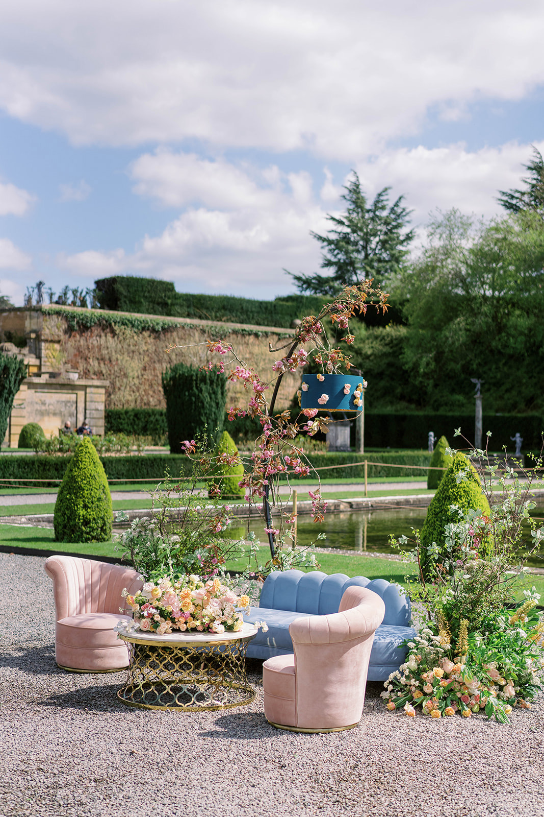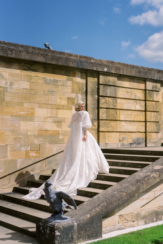 Inspired by the coronation of King Charles III, this styled shoot is nothing short of regal luxury infused with a breath of pastel modernity! Photographed at Blenheim Palace in Woodstock, England, you might recognize this monumental “country house” from Netflix’s binge-worthy Queen Charlotte: A Bridgerton Story! In addition to its current tv-fame, this palace has a notable history as it’s also the birthplace of Sir Winston Churchill. A masterpiece of English Baroque architecture built between 1705 and 1722, Blenheim Palace was designed by renowned architect Sir John Vanbrugh with its world-famous (and exquisite!) formal garden first designed by Capability Brown, one of the most prolific landscape designers of all time.