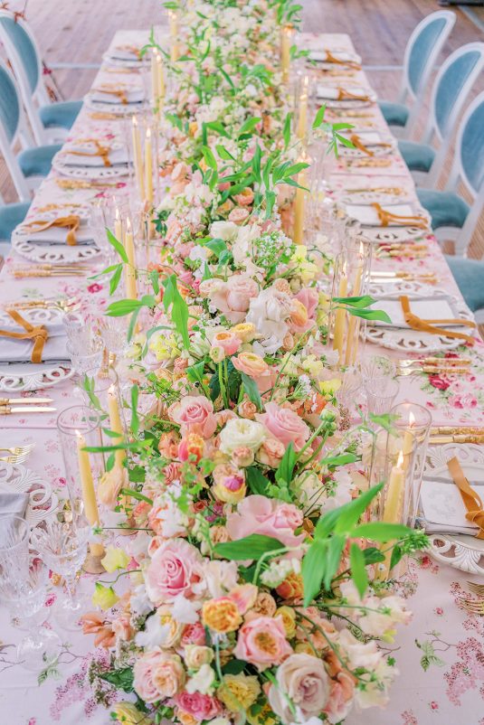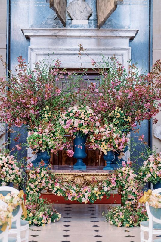 But, back to getting married in true Bridgerton-style, we are OBSESSED with the endless inspiration you’ll find below, from the English countryside-inspired pastel florals to perfect plein-air reception spaces.