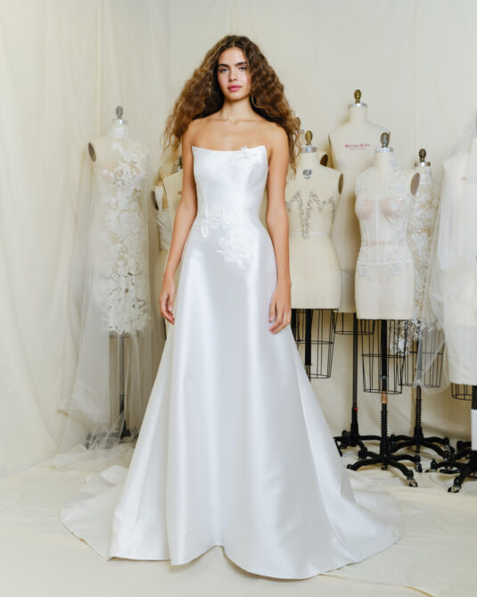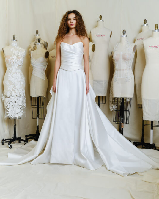 Reem Acra Fall 24 is a captivating traditional collection, echoing the essence of the brand’s heritage and a nod to majestic femininity and timeless elegance. Tailored for today’s modern bride, the collection melds haute couture aesthetics with subtle yet sophisticated designs, encapsulating Reem Acra’s hallmark graceful minimalism.