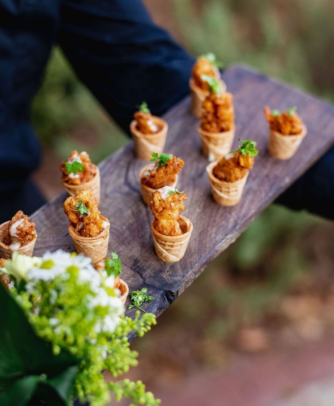 Charleston’s lauded culinary scene is known for its down-home country cooking. We love how CRU Catering interprets Southern favorites, from their Watermelon Margarita Cocktails to bite-size mini chicken and waffle cones.