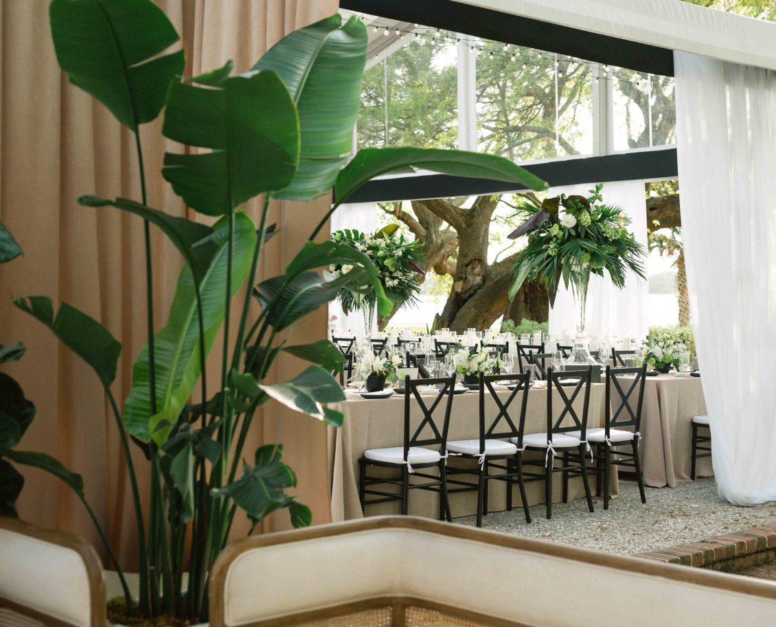 The event planning and design community in Charleston is home to some of the best talent in the USA. Below are the credits for the event professionals involved in this photograph of a wedding reception at Lowndes Grove.