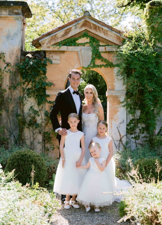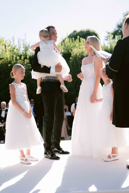 Before the ceremony, the couple enjoyed a “first look” portrait session that included their little girls.