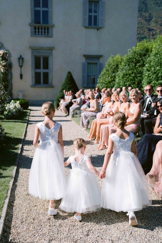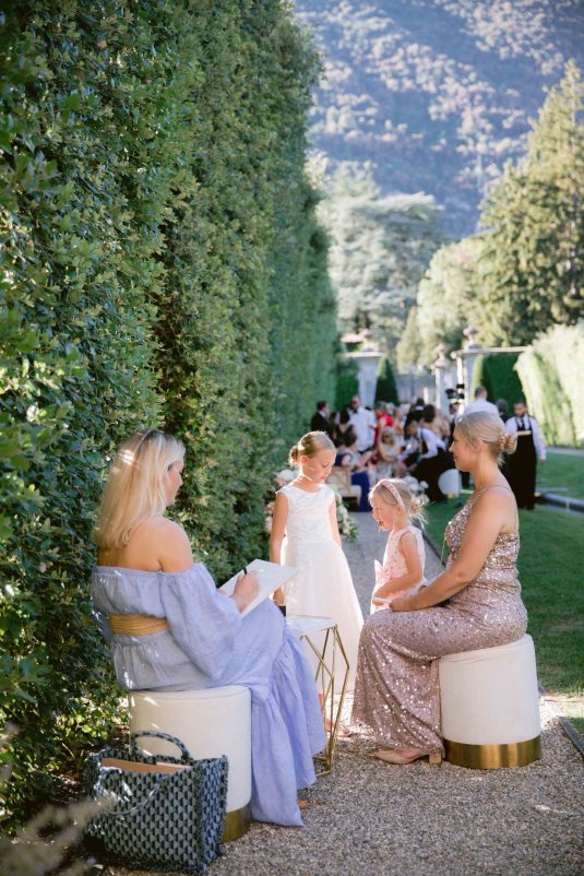 Jasmiina, her bridal party, and the couple’s three daughters spent a relaxing morning preparing for the day ahead at historic Villa Balbiano, where the wedding ceremony and reception took place. Meanwhile, Tuukka and his groomsmen spent the day at Grand Hotel Tremezzo before making their way by boat to Villa Balbiano.