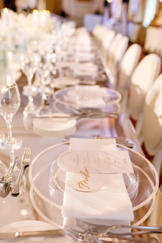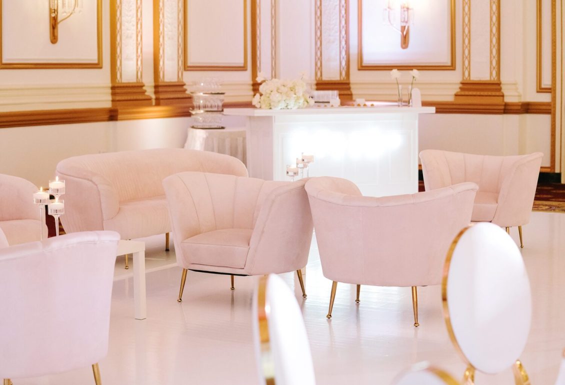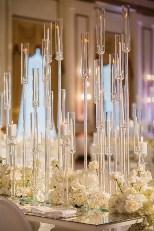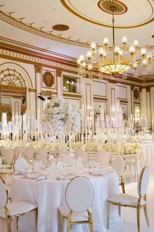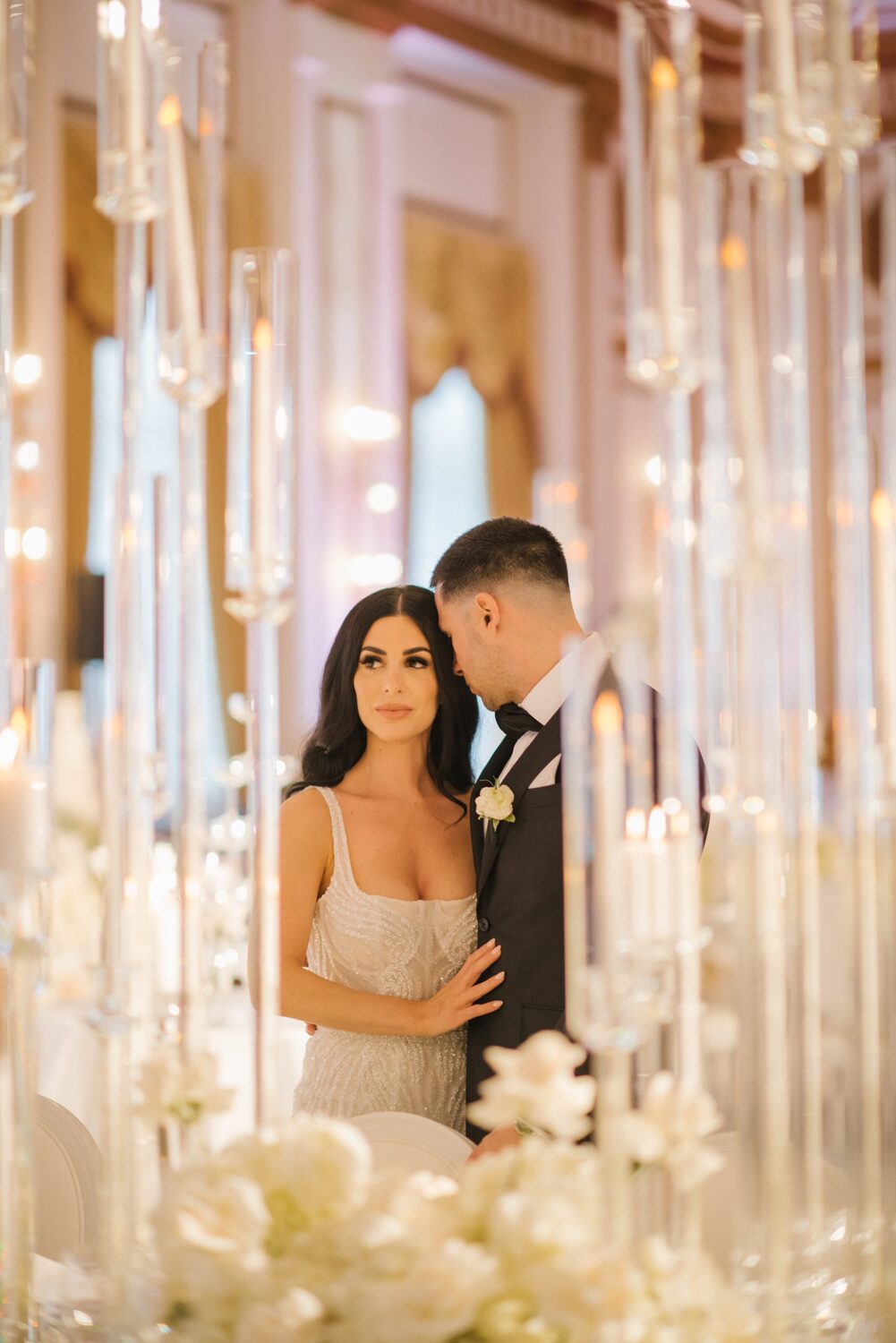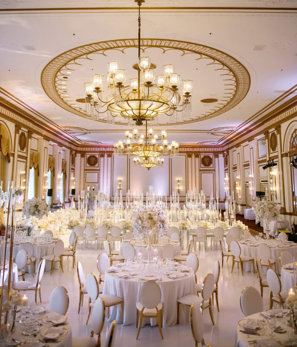 The reception took place at the Fairmont Hotel Vancouver. The Pacific Ballroom absolutely sparkled with a white and gold design that incorporated dreamy florals and hundreds of candles.