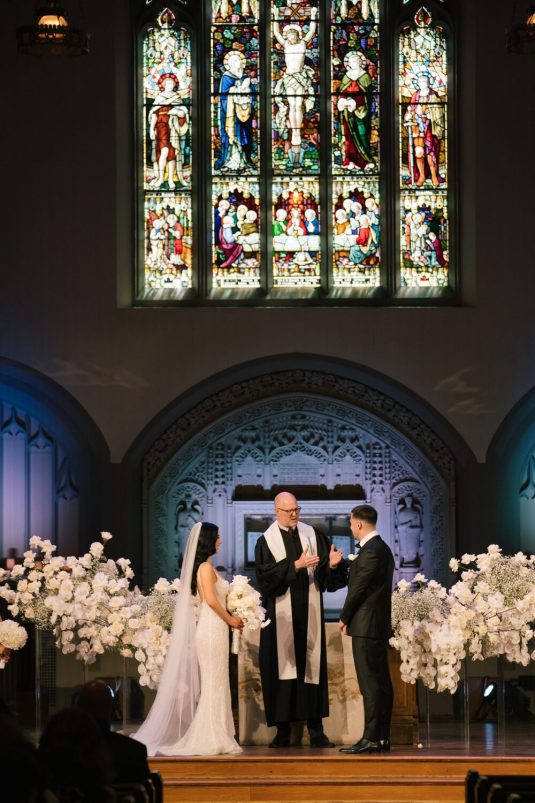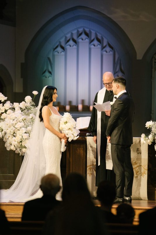 The ceremony took place at the Canadian Memorial United Church. Maria remembers the ceremony as a beautiful moment. “The officiant spoke so well and made us laugh,” she shares.