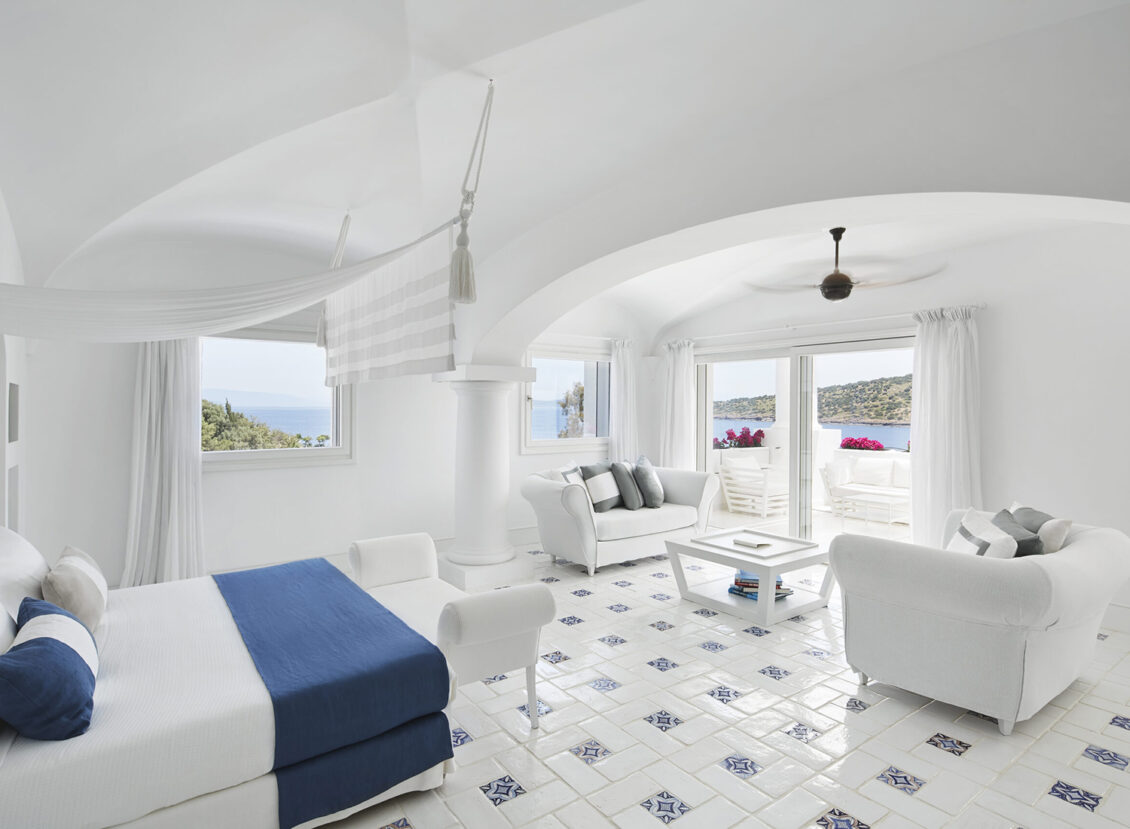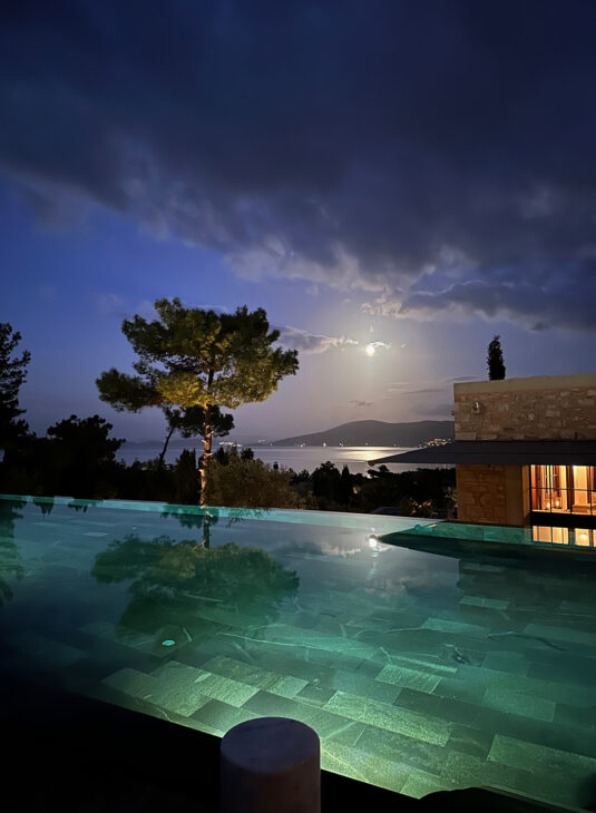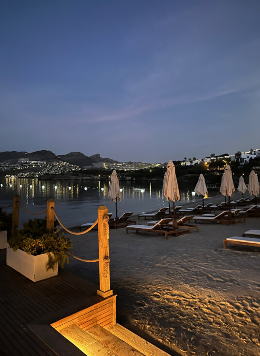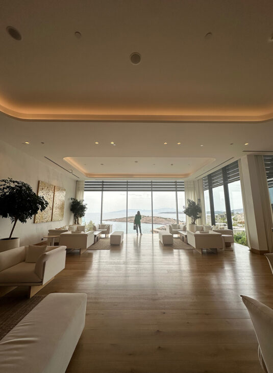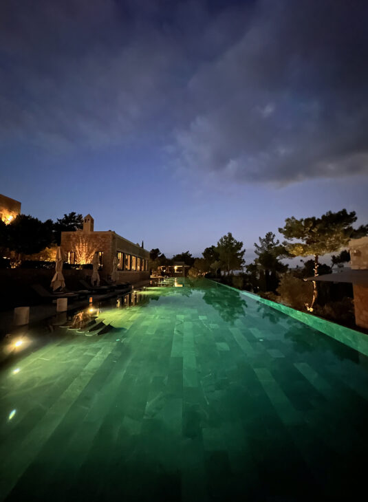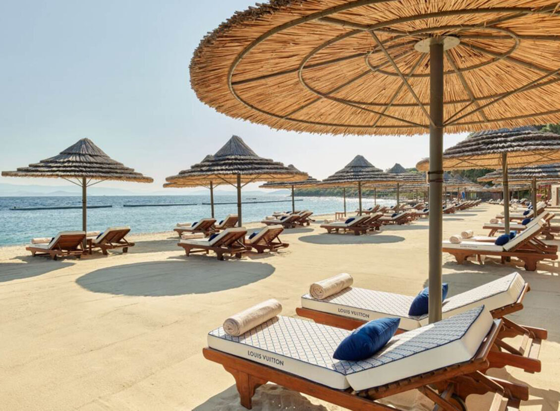The Mandarin Oriental Bodrum is a (worthy!) reminder of how the jet-set crowd has appointed Bodrum Queen of The Turkish Riviera. Suites, villas, and public spaces feature sumptuous, wood-panel interiors, evoking the Asian origins of the brand. Still, the gleaming white marbled exteriors of the individual retail villas (housing Dior, Chanel, Valentino, and Louis Vuitton, to name just a few) were what caught my eye. As you descend the scenic mountainside on your golf buggy to the beautiful beach club, you pass each shop, which makes this property feel like a village for A-list travelers. Speaking of the beach club and luxury brands, this summer, The Mandarin Oriental Bodrum joined the “designer branded beach club” bandwagon, and its recent summer collaboration with Louis Vuitton was perfection.