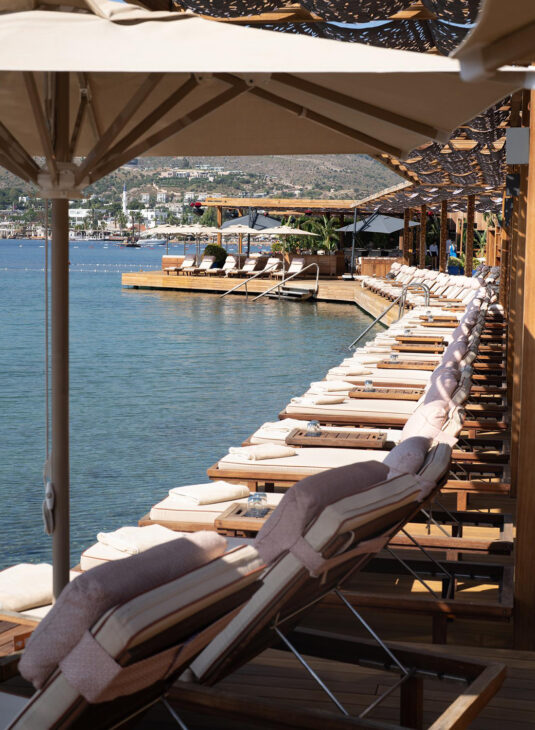 Inheriting the rustic and authentic vibe from his mother’s original concept, Sahir Erozan has infused the property with his own experiences, updating the hotel’s offerings without compromising its intrinsic character. He emphasizes a no-TV policy in the rooms, favoring the richness of direct experience with nature, the gardens, and the sea instead. This philosophy has transformed Maçakızı into a sought-after destination for Turkish and international visitors, with the beach club’s design notably emphasizing environmental respect and the natural beauty of the Bodrum coastline. Foodies will also love this property as the hotel’s restaurant recently received a Michelin star.