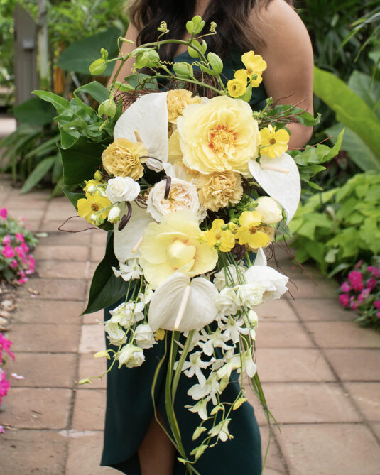There’s no place in the world quite like Hawaii, ESPECIALLY when it comes to the tropical flowers and greenery that emanate the most intoxicating scents and that feeling of pure relaxation from the second you set foot on ANY of the Hawaiian Islands! For that reason (and so many more!) Hawaii remains one of the top locations worldwide for destination weddings. Yet we can’t ALL be married in Maui, no matter how tempting the idea. So, imagine channeling that Aloha magic into your wedding no matter where you’re having it. It’s possible, as we’ve recently discovered!