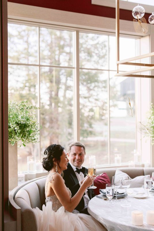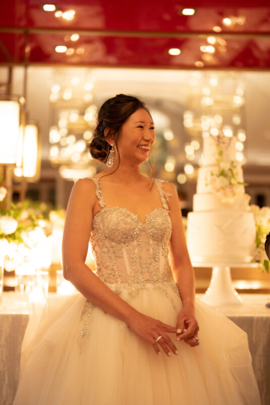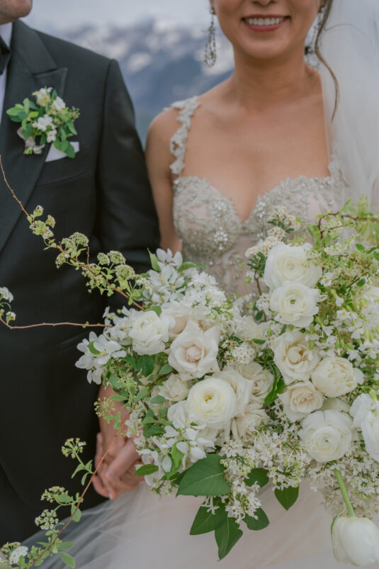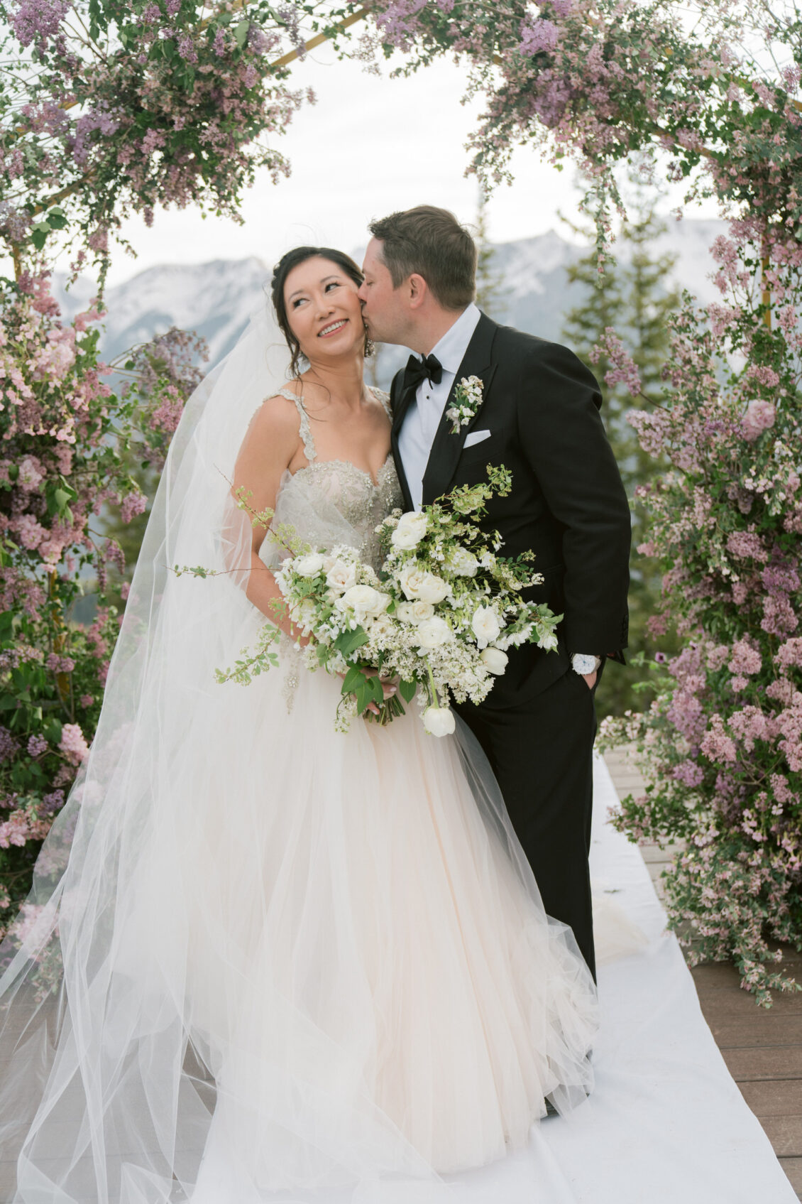 Nothing can describe the ‘wow factor’ when I stepped onto the path to walk down the aisle with my father. It was just so perfectly picturesque — the cool breeze, sunlight breaking through the snow-capped mountains, blue skies with puffy white clouds, and everyone looking at us with big smiles!