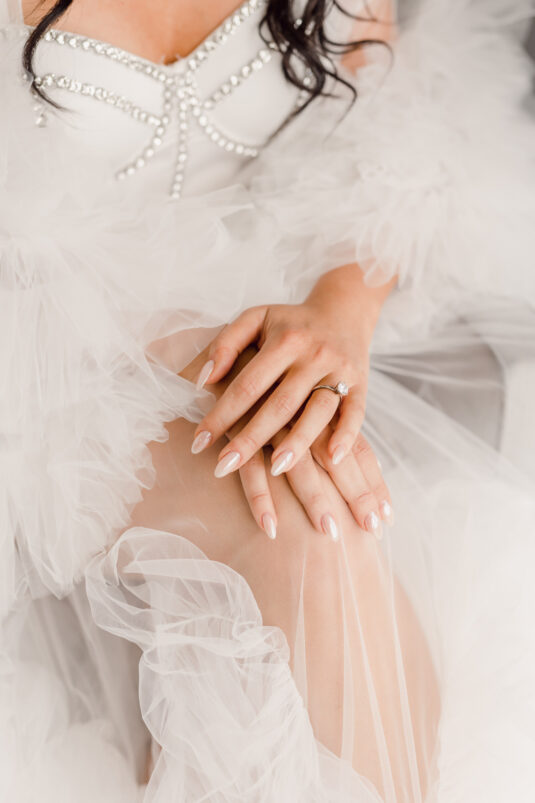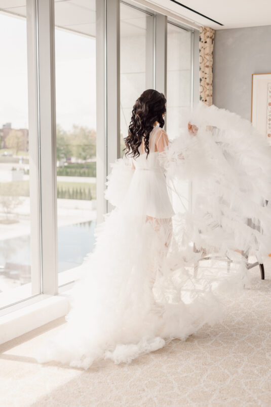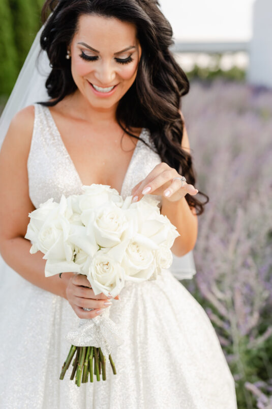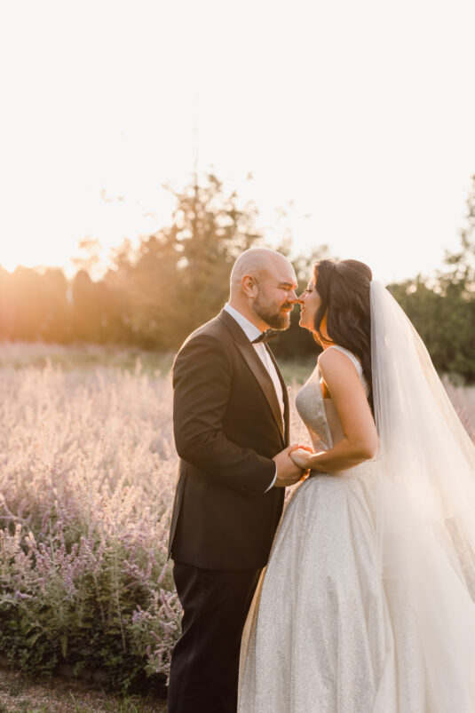 Samin Saniei met Joseph Martinez at a club while on vacation in New York City; they chatted up the night and began a long-distance relationship soon afterward. Two years later, Joseph moved to Toronto to be with Samin and surprised her by proposing in her parents’ backyard. The romantic set-up included a live violinist, an oversized ring structure, rose petals, the question “Will you marry me?” cast over the pool, and friends and family waiting nearby to celebrate with an impromptu engagement party.