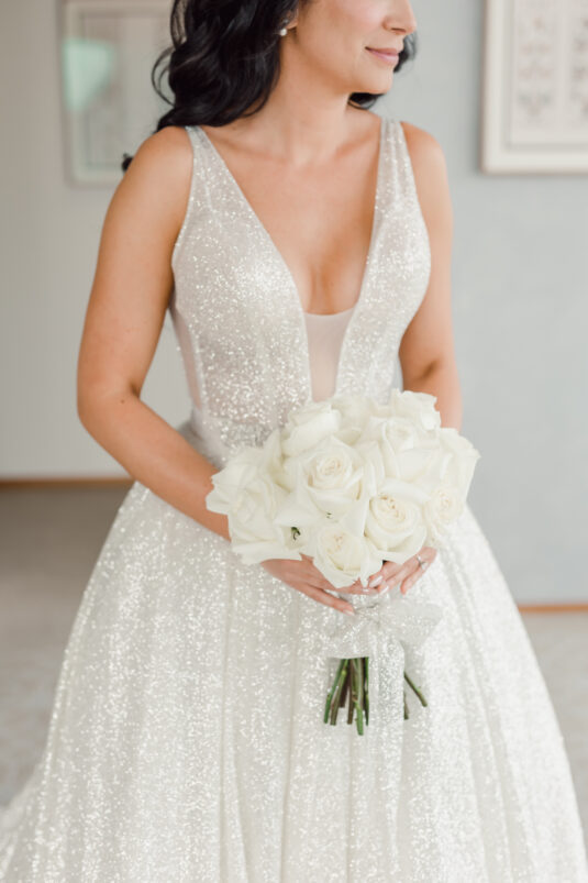 The outdoor wedding ceremony had a “fresh heavenly feel” and featured a Sofreh by La Violetta with flowers by Henna Florist. Samin’s brother officiated the ceremony, guiding lighthearted traditional aspects like the grinding of sugar cones by happily married women, as well as asking the bride three times if she “agreed” to marry the groom.