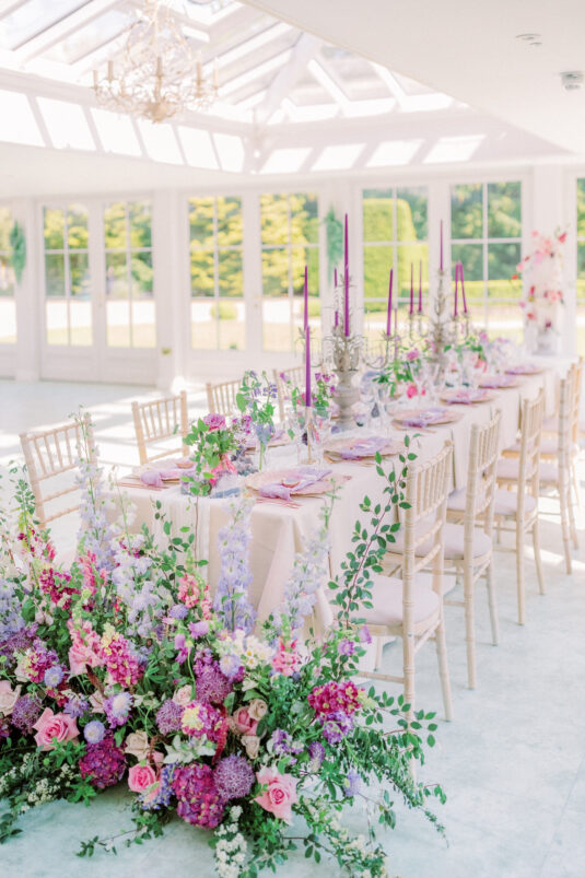 The group wanted to create a whimsical and enchanted wedding that looked as if it could have appeared straight from a fairy tale, and Hayne House (located in Kent, England) with its beautiful orangery and stunning gardens was the perfect backdrop for their vision.