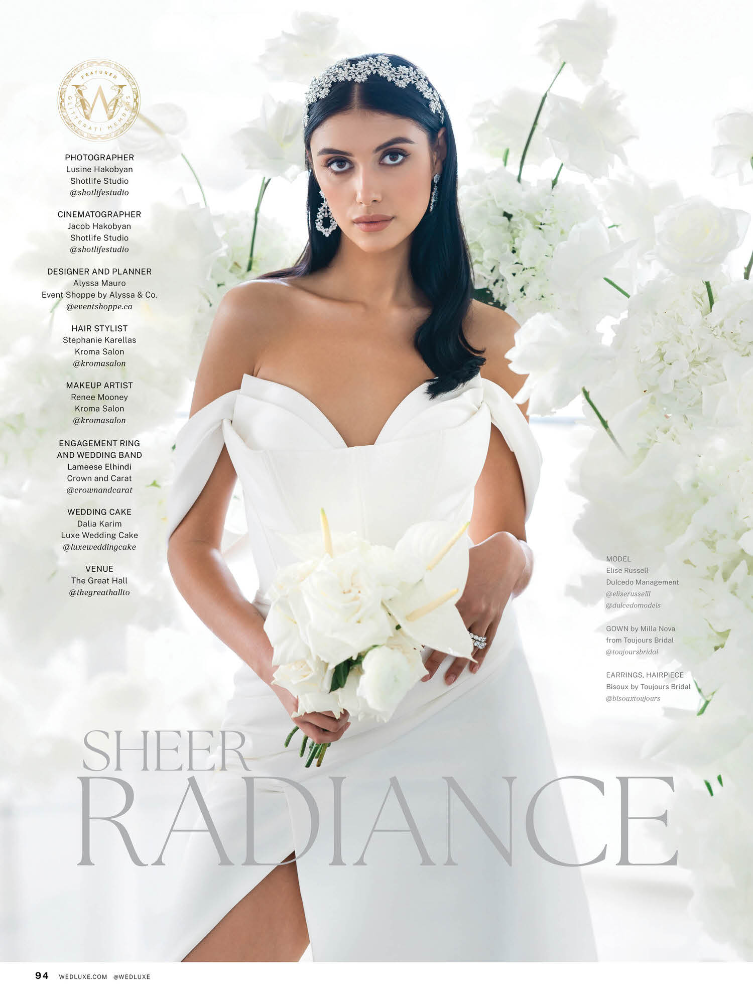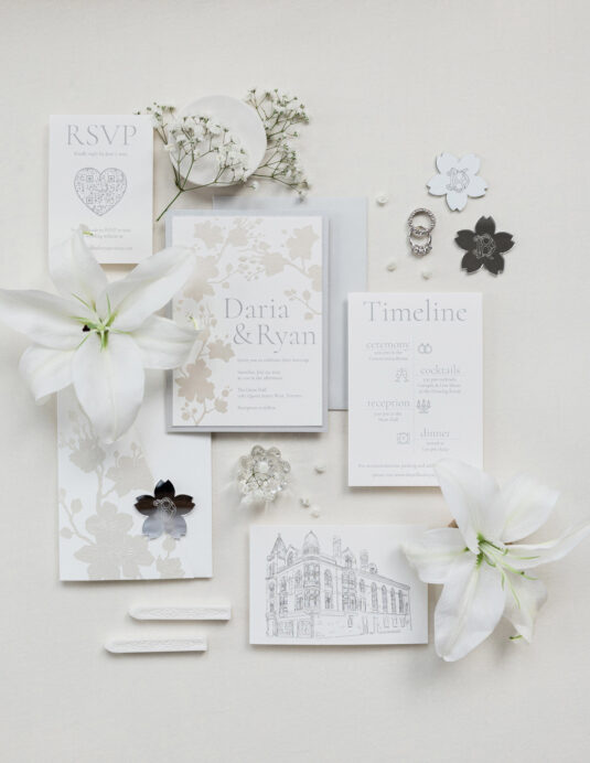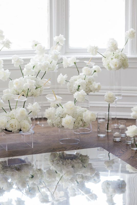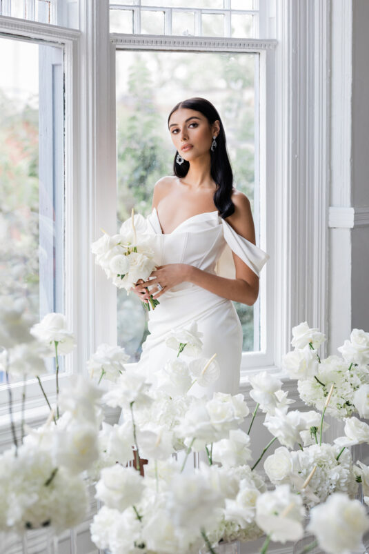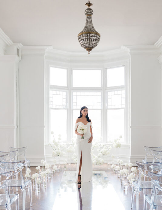 We’re forever inspired by clean, classic (and ethereal) “wedding whites,” but especially love this beautiful styled shoot interpreting the concept of a modern silhouette and all-white wedding decor. Kudos to the team of WedLuxe Members who created this beautiful editorial photoshoot that was published in Issue #31 of WedLuxe Canada, now on stands and available through the WedLuxe Shop.