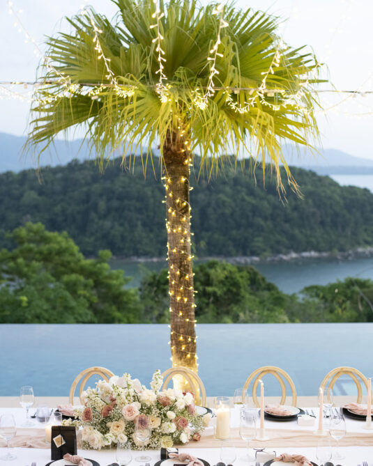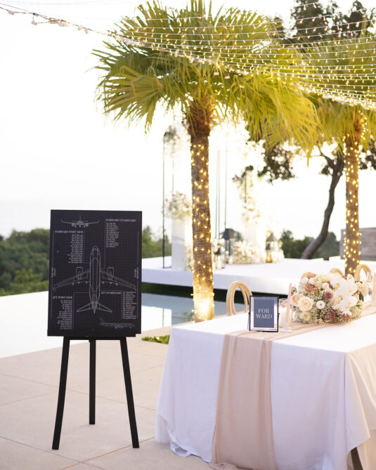 Pilot Chris and his bride Heidi, a lawyer, celebrated their beautiful seaside wedding at the luxe Anantara Layan, in Phuket, Thailand. ME Events Phuket provided event planning and design.