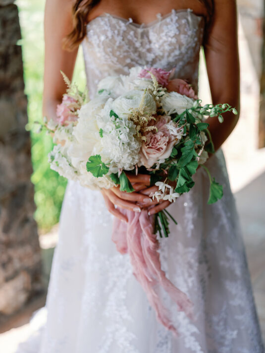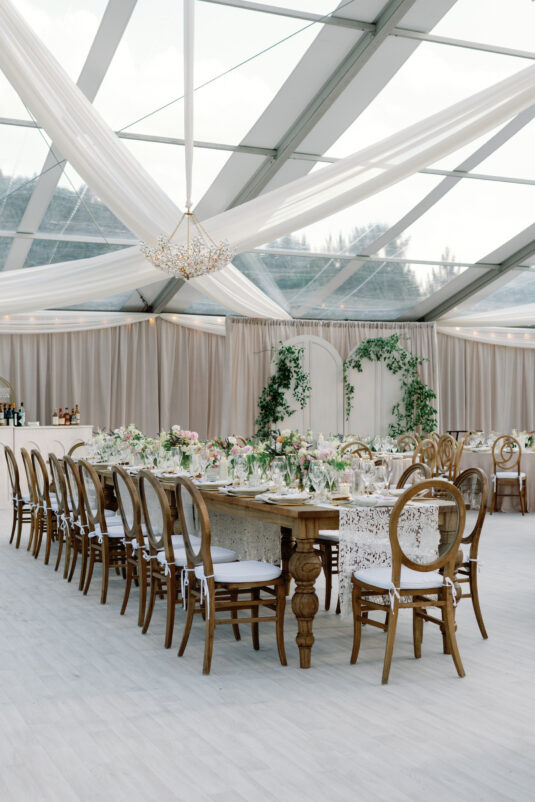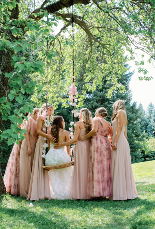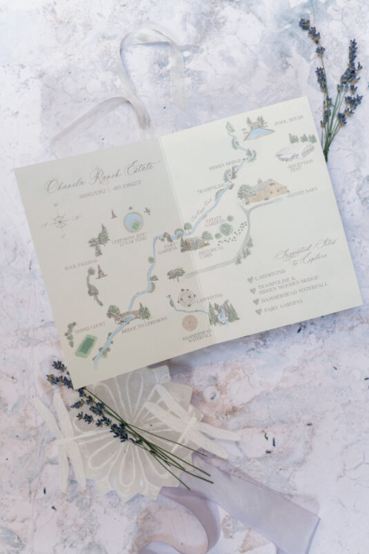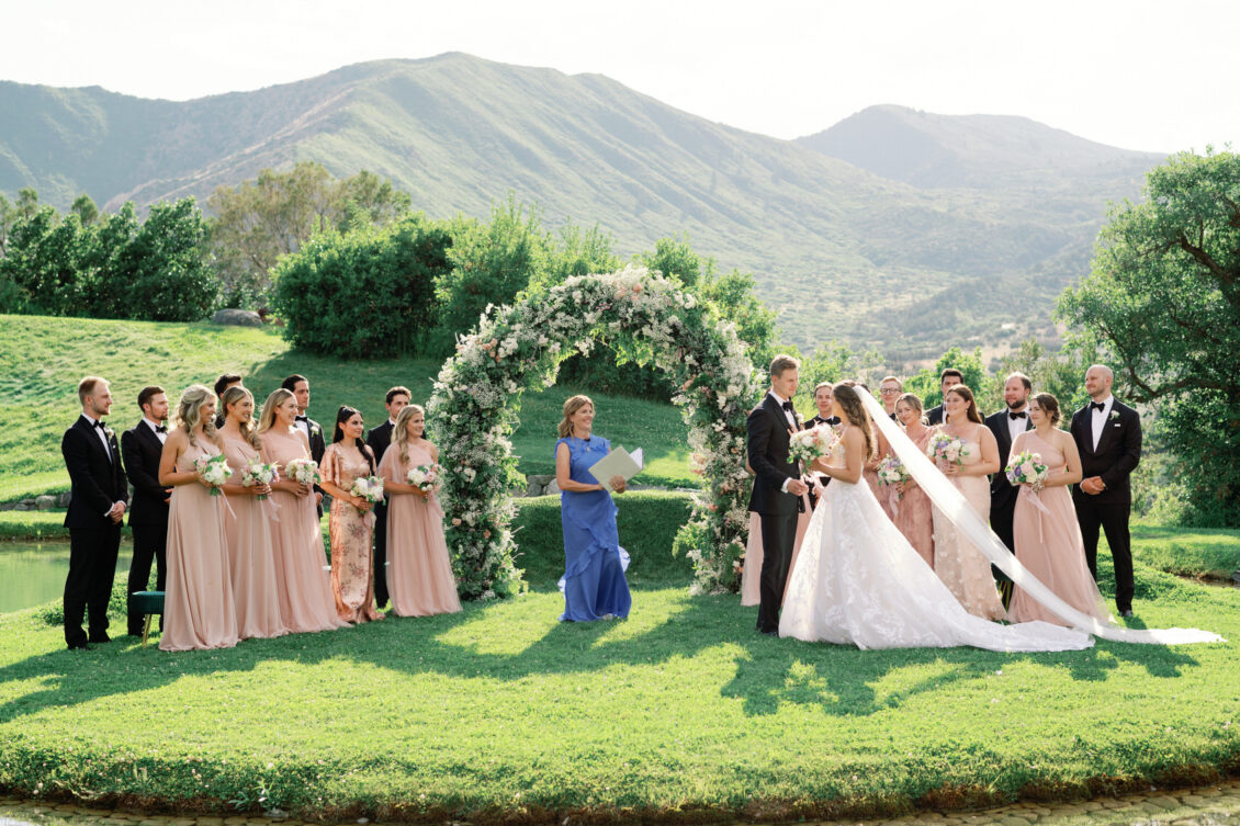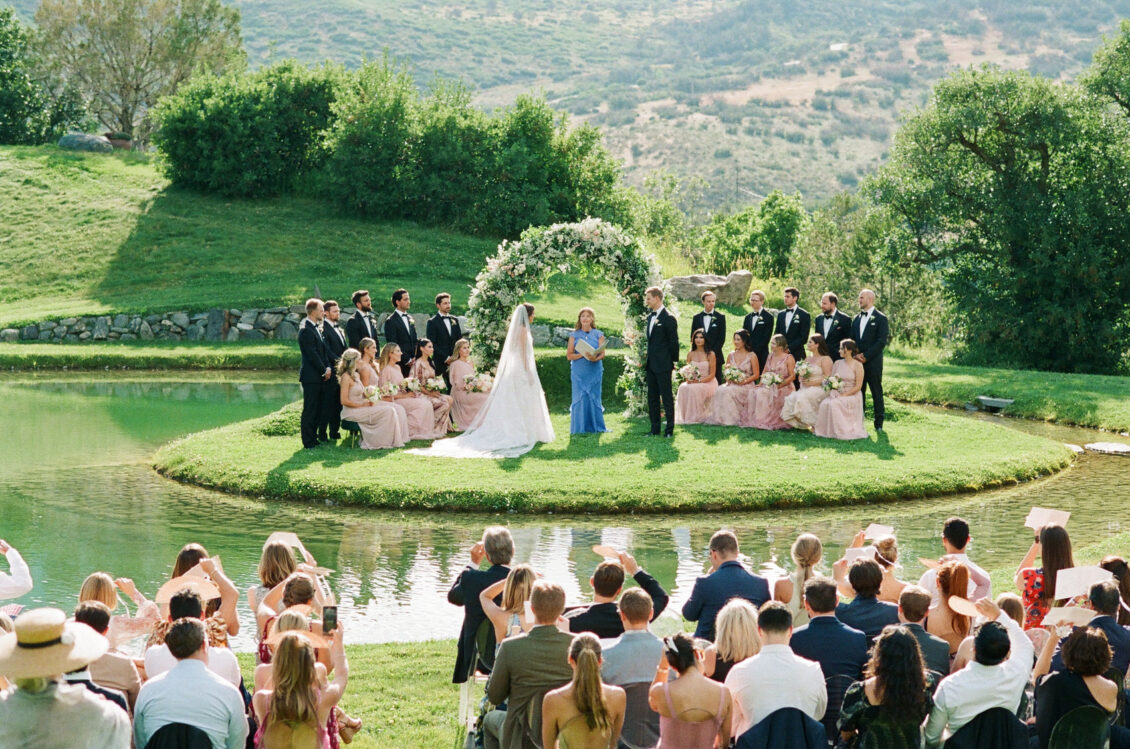 The couple were married at the bride’s parent’s ranch, Okanela Ranch Estate. The private property, complete with a sacred circular pond, was destined to be the wedding venue for quite some time as it held special significance for the bride and her family. Redefining a “full circle” moment, Thea’s parents purchased the property some twenty years earlier hoping that Thea would have her wedding there one day!