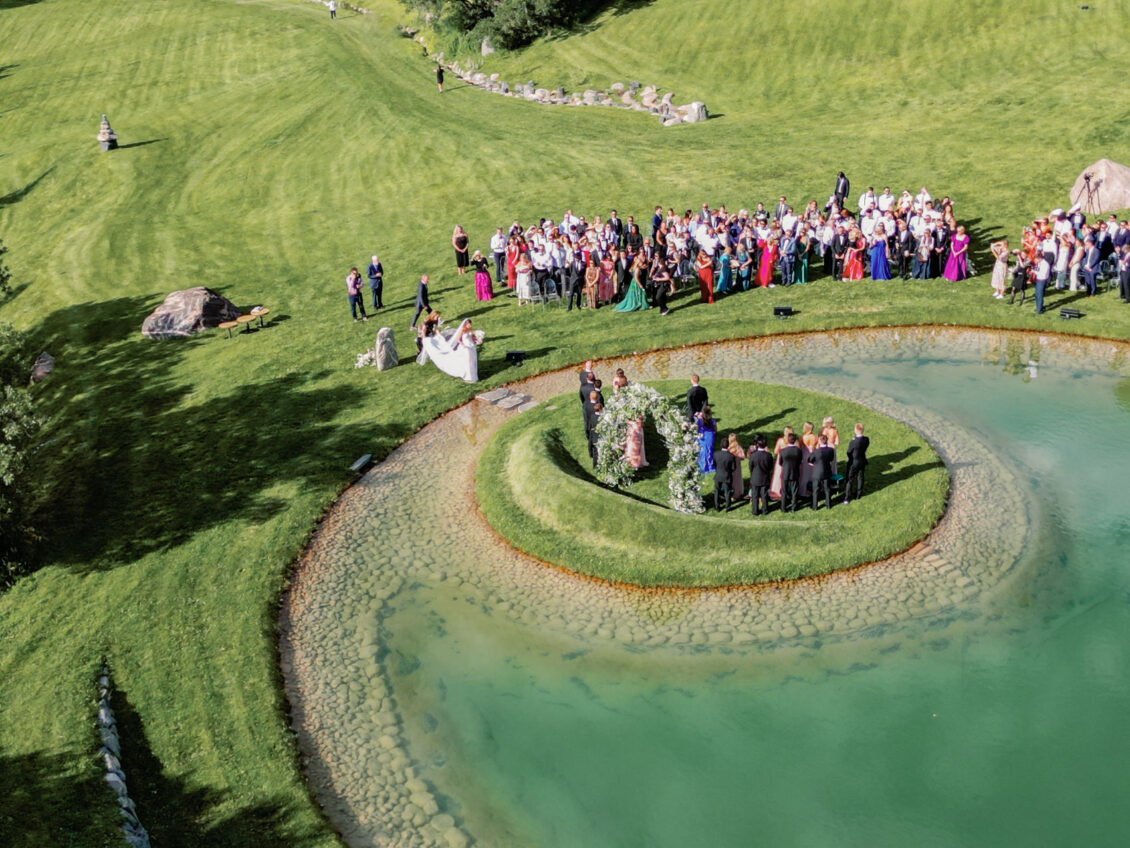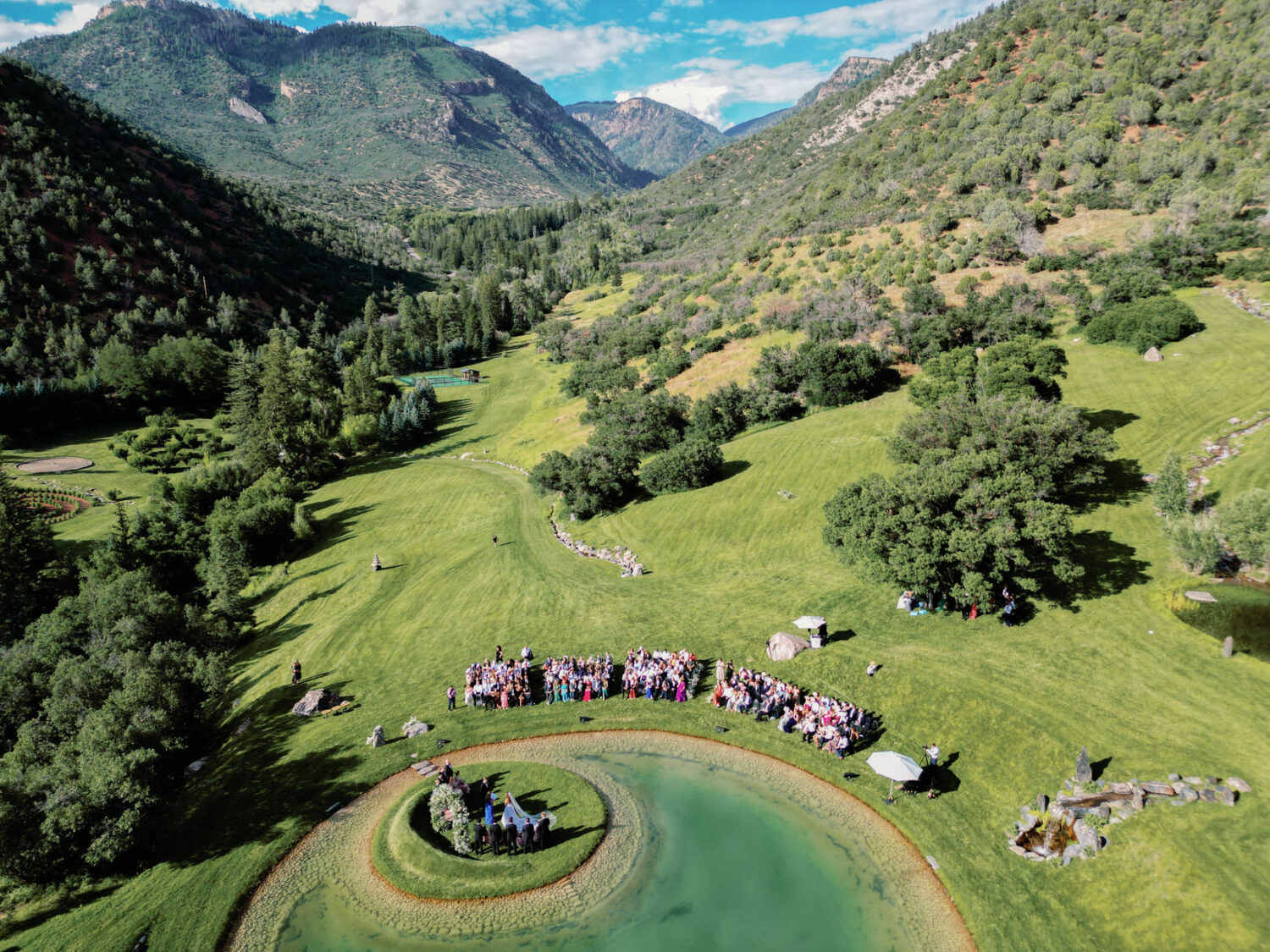 The Lunar Pond where the ceremony was held, is a sacred site on the family’s property. It is an artistic expression of the marriage of the sun and the moon, also seen as the merging of masculine and feminine energies. The environmental art throughout Okanela Ranch is designed to express several images of the sun and moon encompassing each other.
