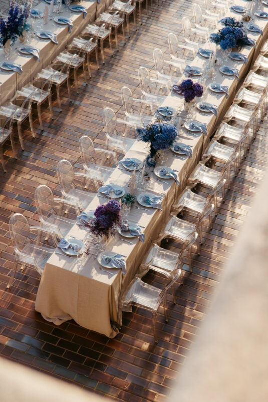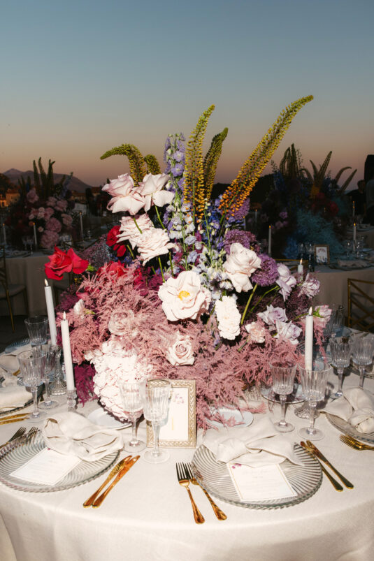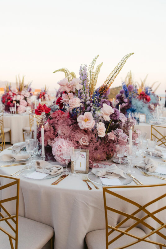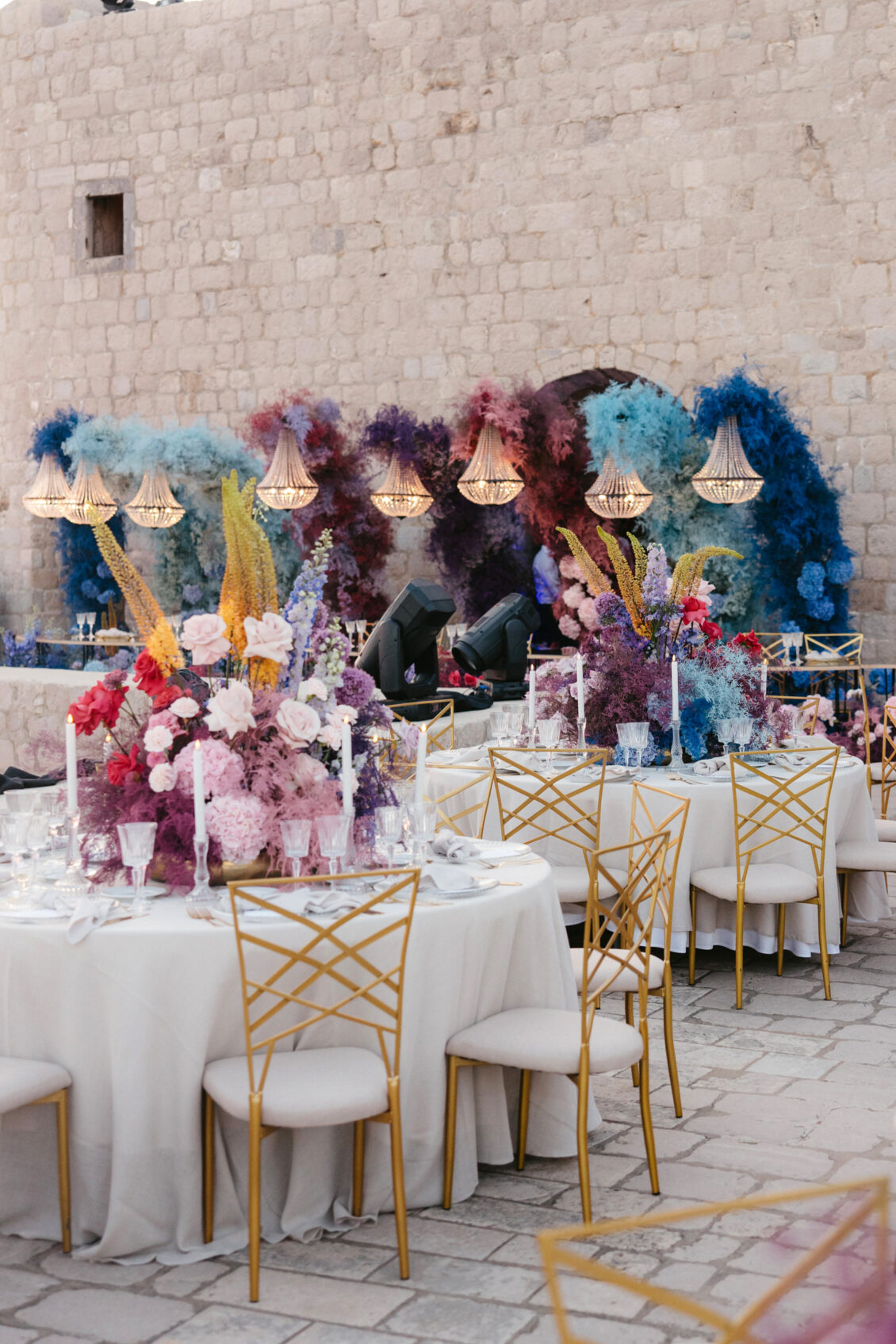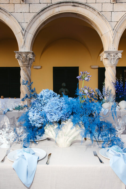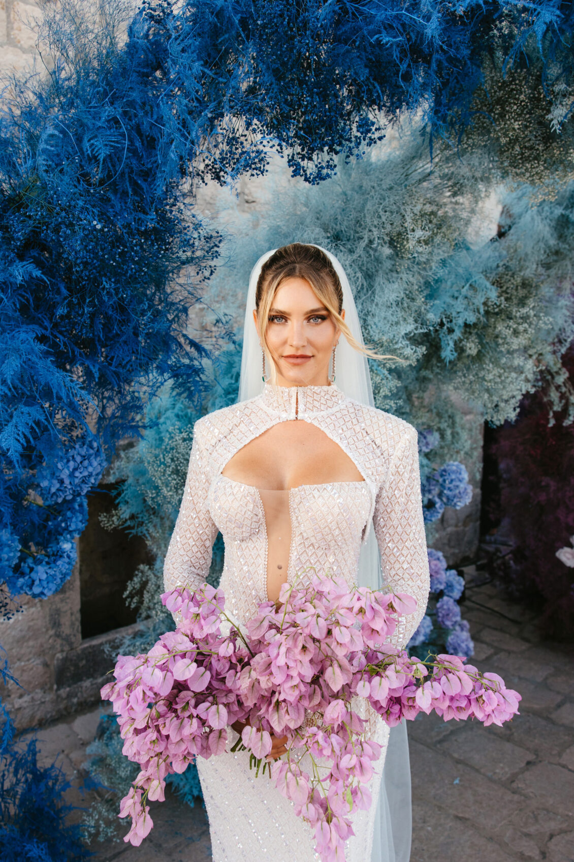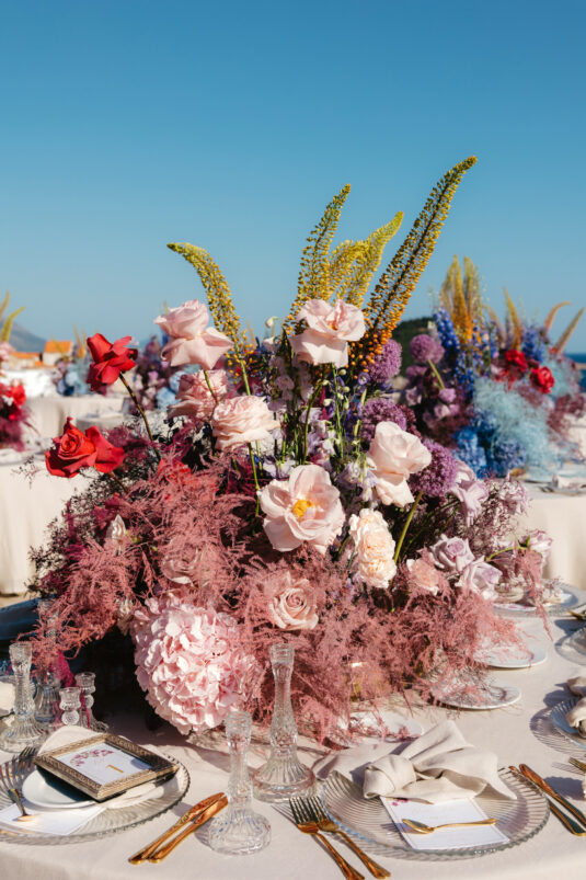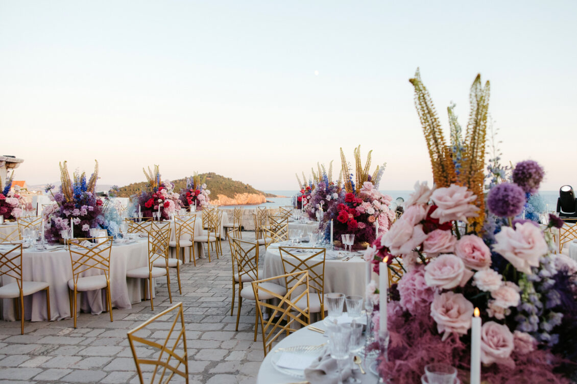 Starting at 5 a.m. on the morning of the wedding, more than 300 people worked on getting the venue ready for the wedding, which not one, but two wedding planning agencies coordinated. With colorful pink and blue ombré flowers, this wedding mixes historical elegance with modern beauty and creates a dream-like event.