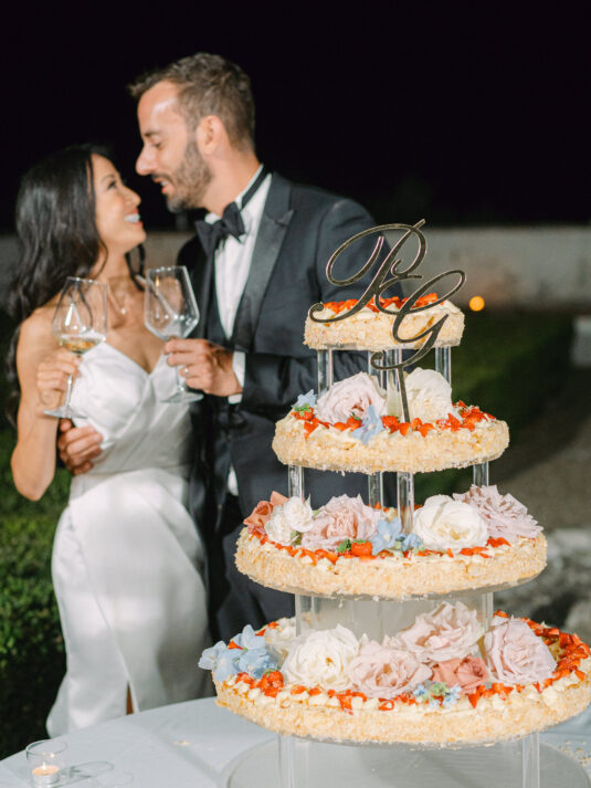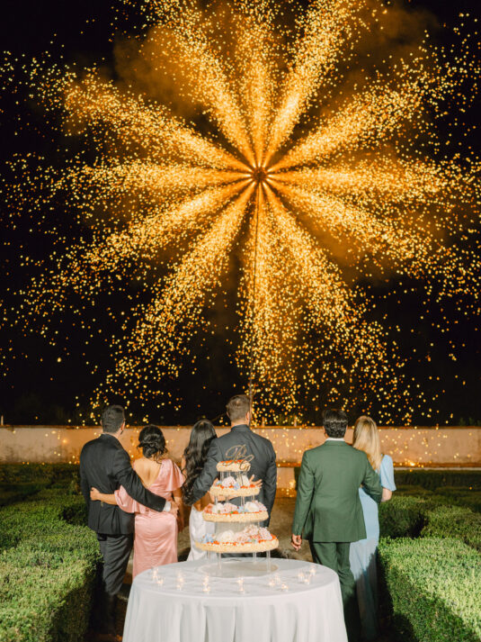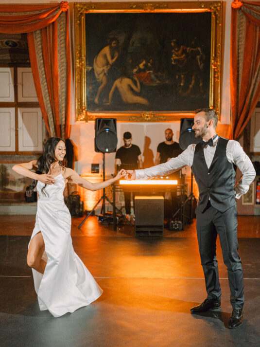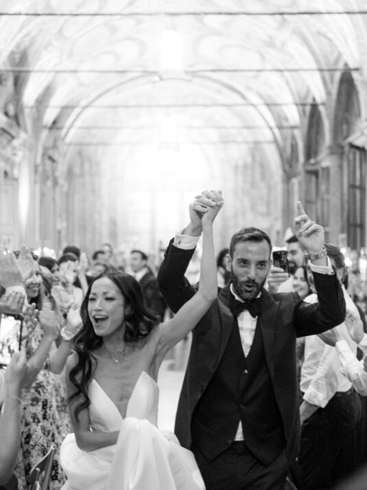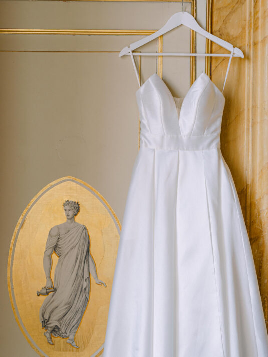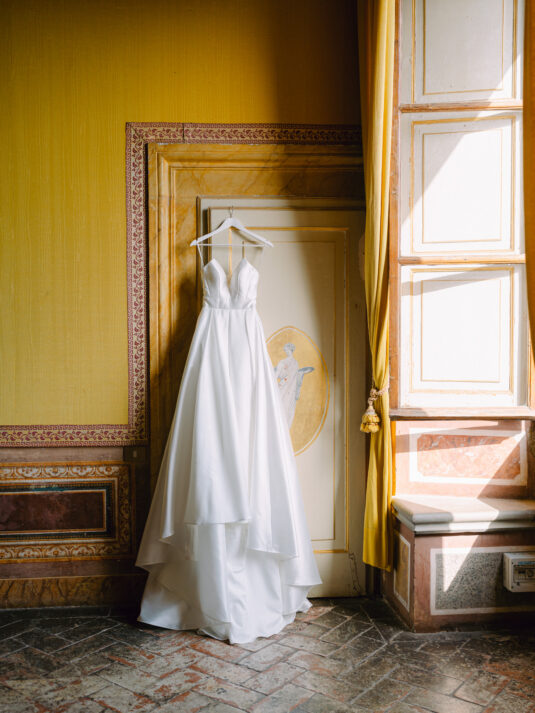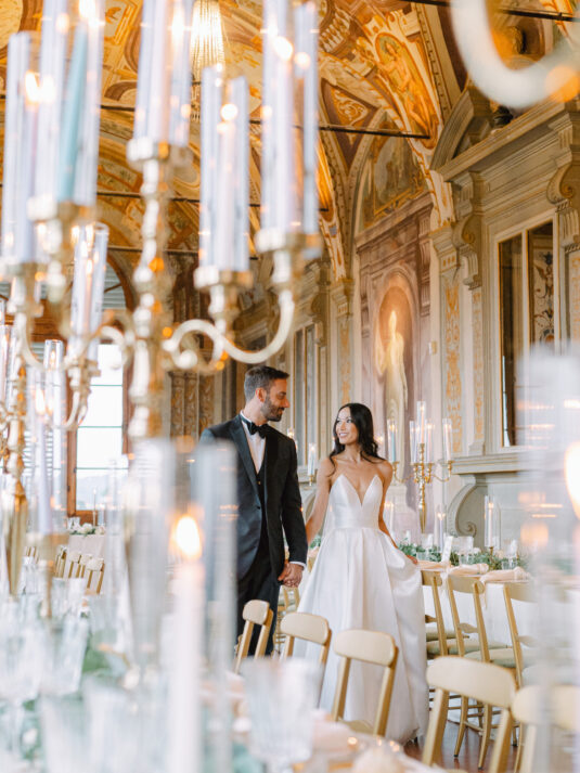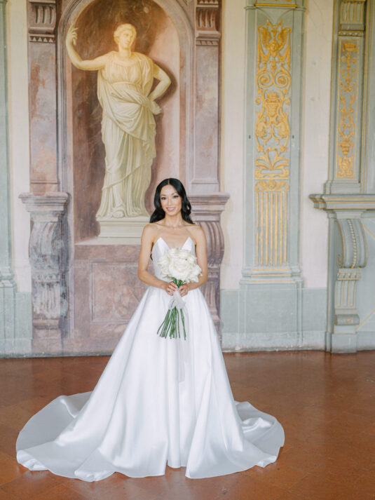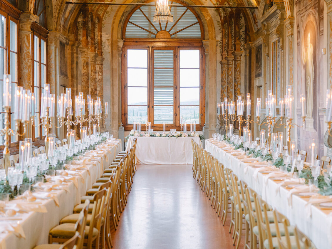 Giselle and Paolo’s wedding was held in the stunning garden of Villa Corsini. From the garden to the golden reception, this wedding looks straight out of a fairytale. Dinner was held in the Galleria del Pandolfo Sacchi, one of Tuscany’s most remarkable privately frescoed halls. Adorned in gold and art, you will get major wanderlust just by looking at it!