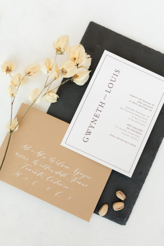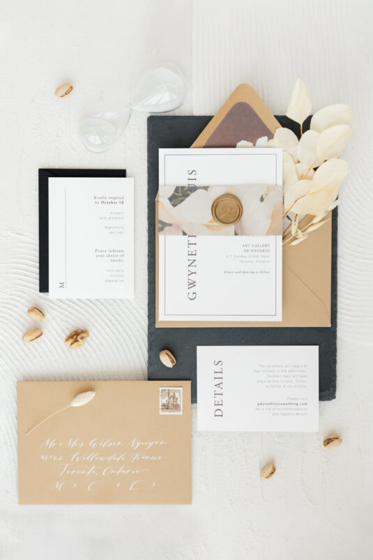 If you love a modern, neutral aesthetic – look no further! This styled shoot at the AGO (Art Gallery of Ontario) is all about sleek lines, geometric shapes, and stunning neutral tones – perfect for a spring or fall wedding.