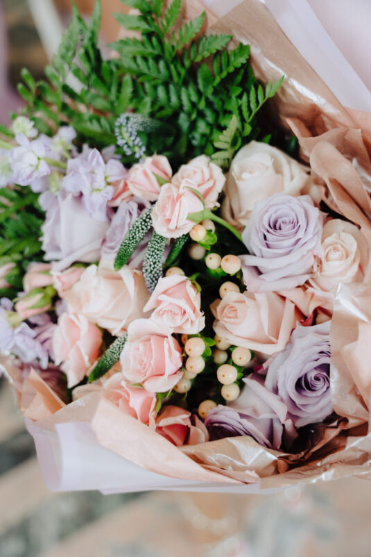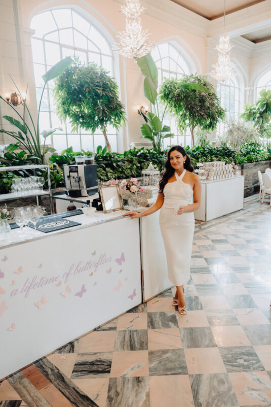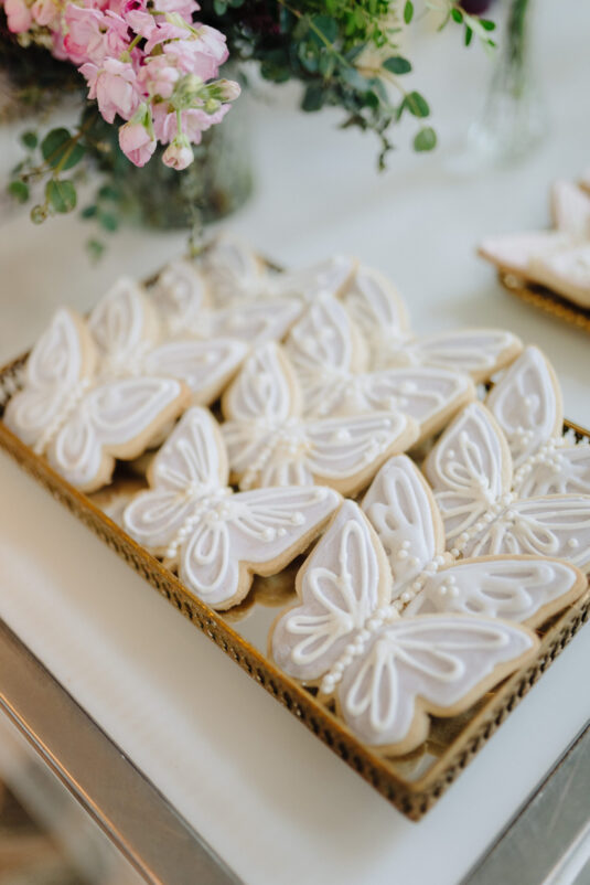 to help bring her romantic-meets-whimsical vision to life with dainty pink and lilac florals, gold accents, and hints of butterflies. Scroll down to see the magical results and make sure you pin and save if you’re in the process of planning your bridal shower!