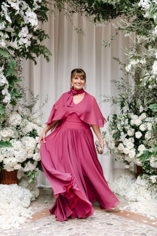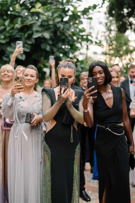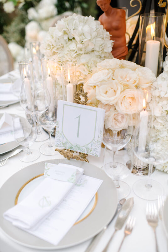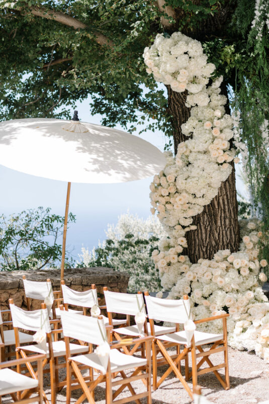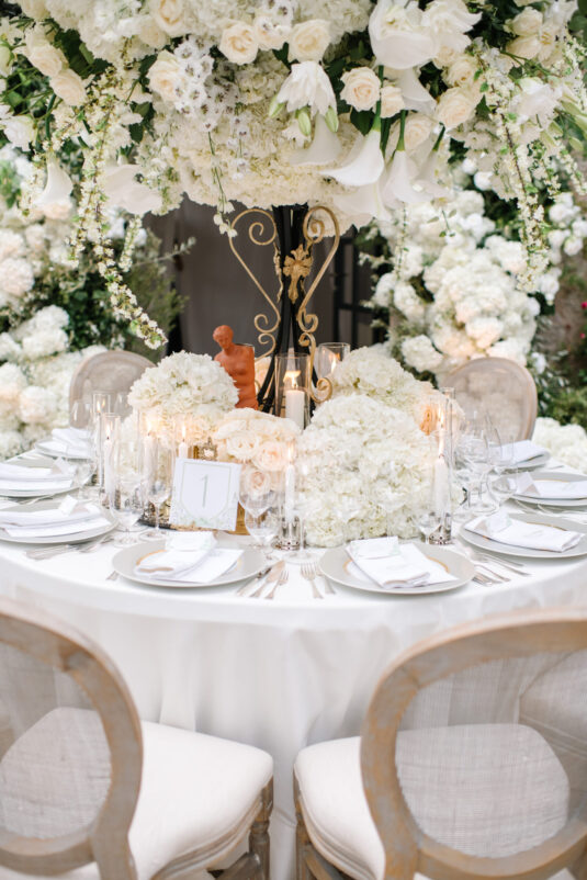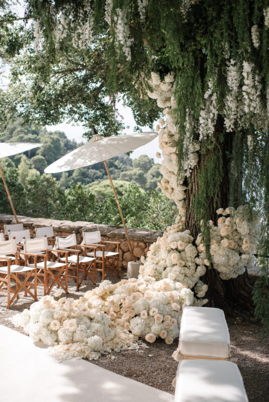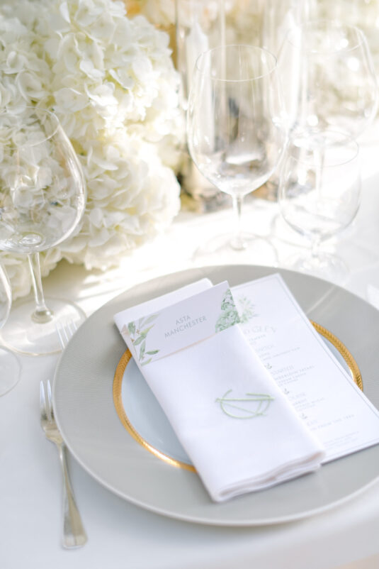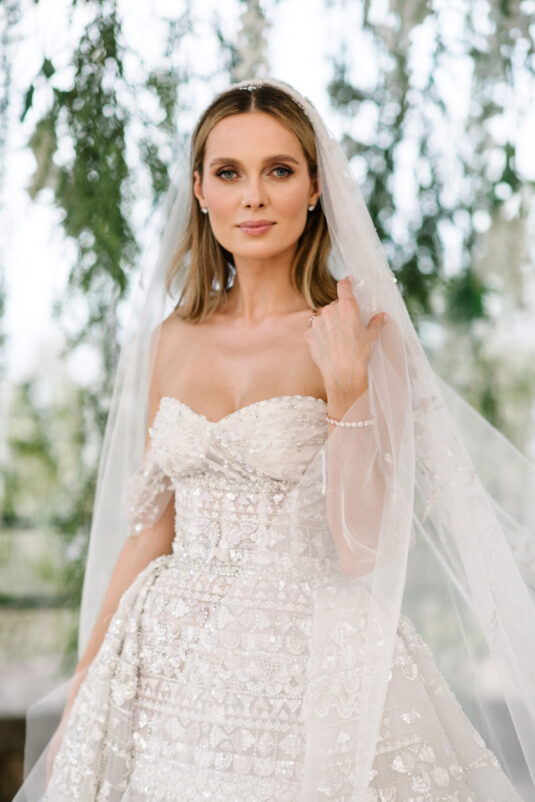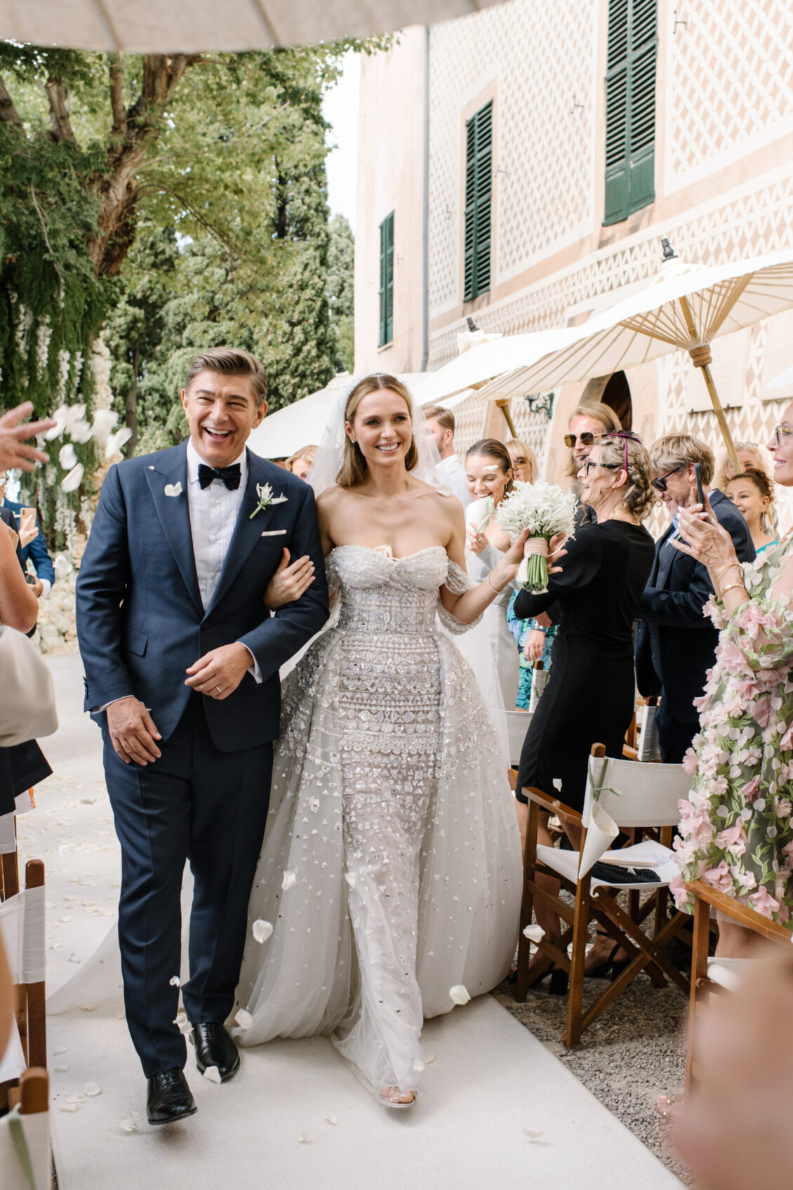Asta looked breathtaking in not one, but TWO Zuhair Murad gowns. The wedding was elegant, sophisticated and enchanting! The ceremony was held outside an old monastery under a tree with cascading white flowers and overlooking the sea. A huge arch of white orchids led guests to dinner on the terrace of the hotel’s restaurant, El Olivo. The couple’s intimate guest list included photography legend David Montgomery and Lithuanian supermodel Edita Vilkevičiūtė.