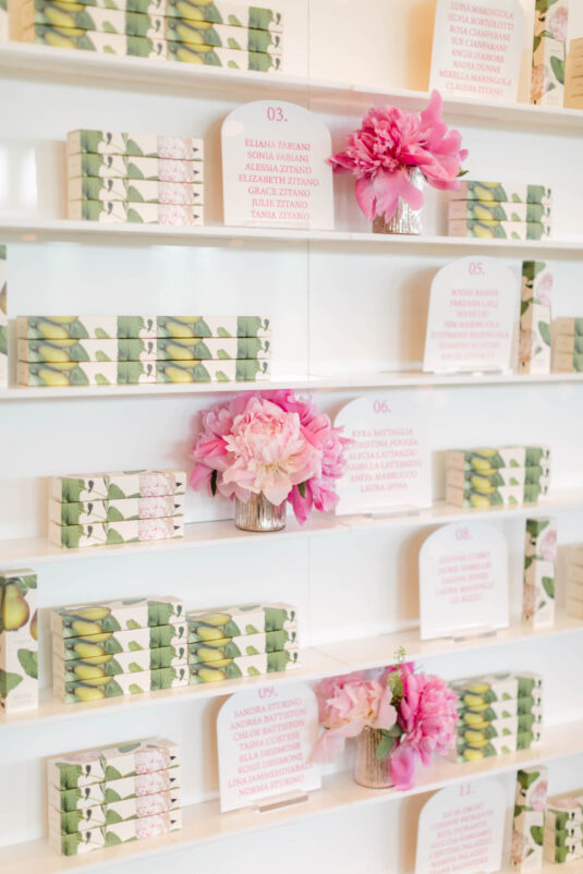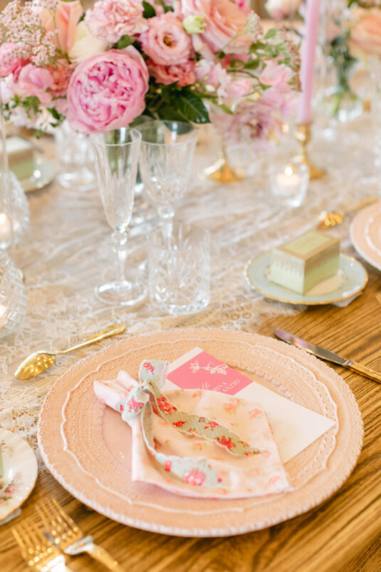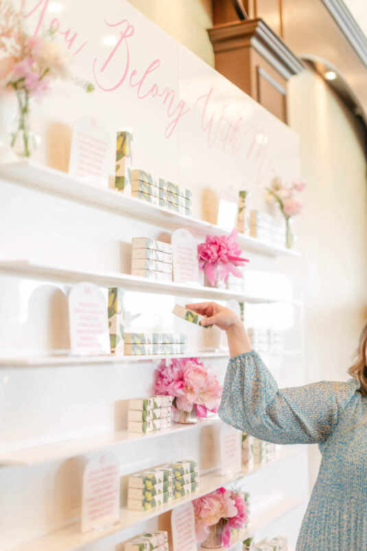 wowed guests with a fairytale setting, filled with memorable experiences, including a Jo Malone seating chart (where each guest got to take home a perfume!), personalized fashion illustrations, a lip gloss bar, and Ladurée macarons. Scroll down to see all the pretty details and save/pin if you’re as obsessed as we are!