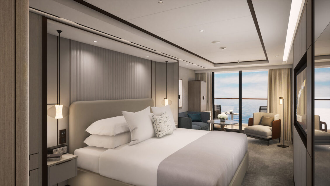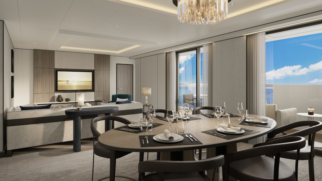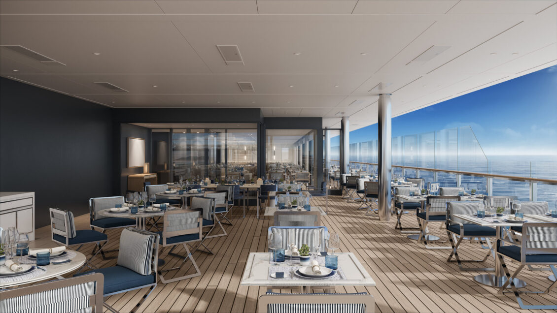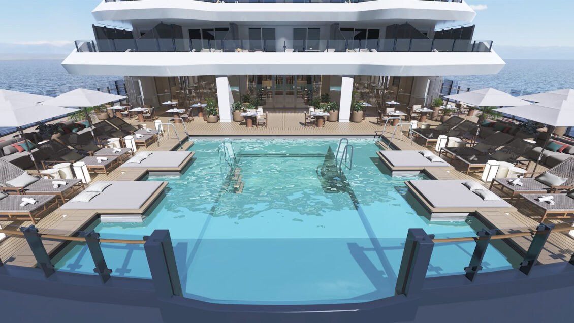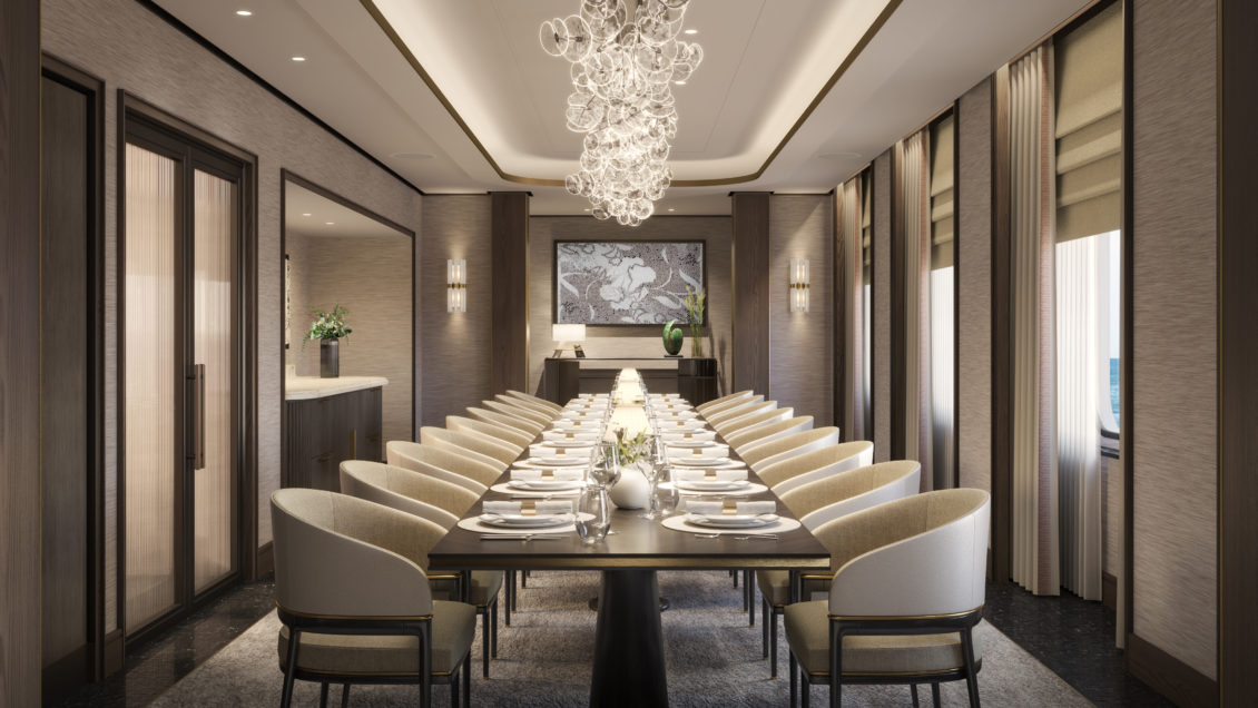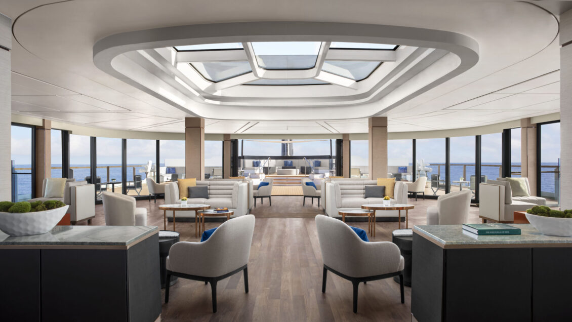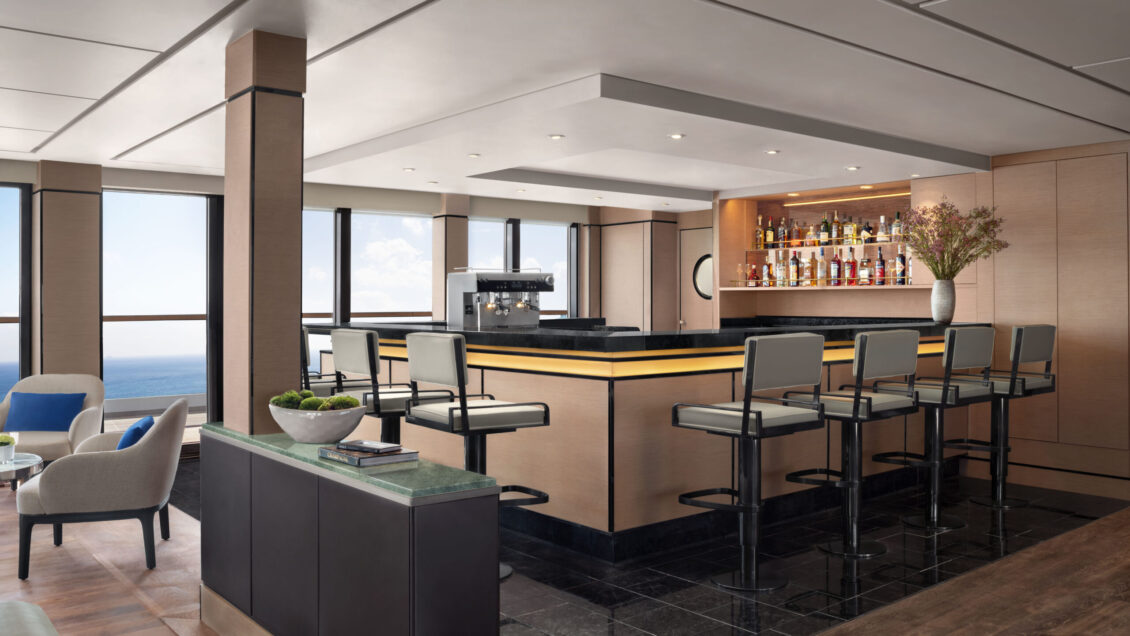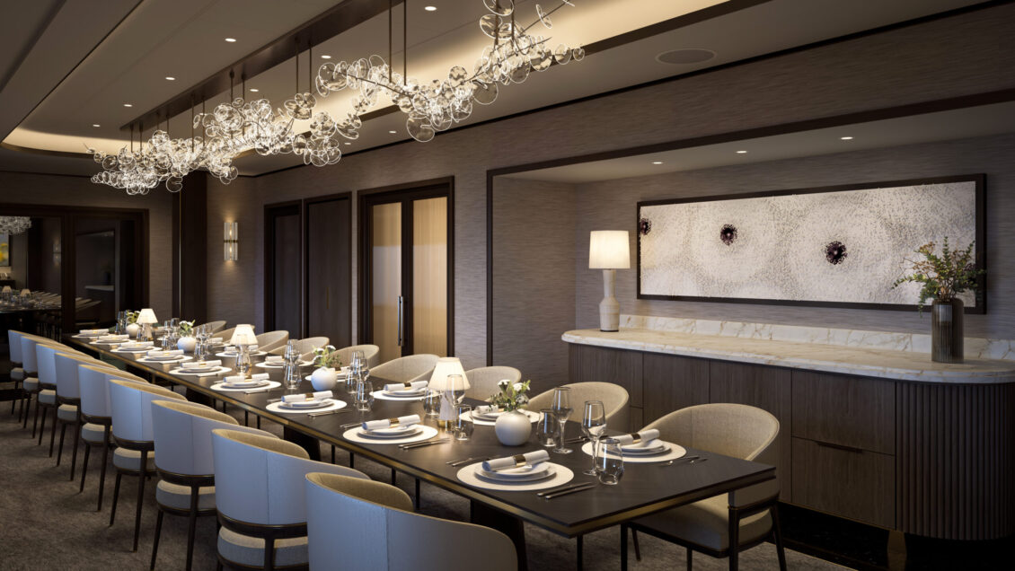 The largest of the three yachts, launching in 2025 – Luminara will have the capacity for 452 guests across 226 suites. Two new upper suite categories will deliver 1,000 sqft of space to enjoy. The yacht will also feature five restaurants, six bars, and of course – a wine vault! luxury yacht wedding