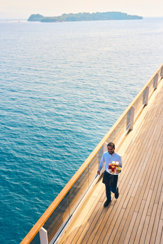 Drop anchor along the most beautiful backdrop you can imagine to say “I DO” in a dream ceremony on Evrima’s bow. This will be followed by a sunset cocktail hour on Marina Terrace, a seated reception dinner in the Observation Lounge, and an outdoor after-party on the Observation Terrace. Follow your wedding day with a tailored multi-day itinerary where every detail is taken care of and you can enjoy exploring your favorite destinations with your nearest and dearest.