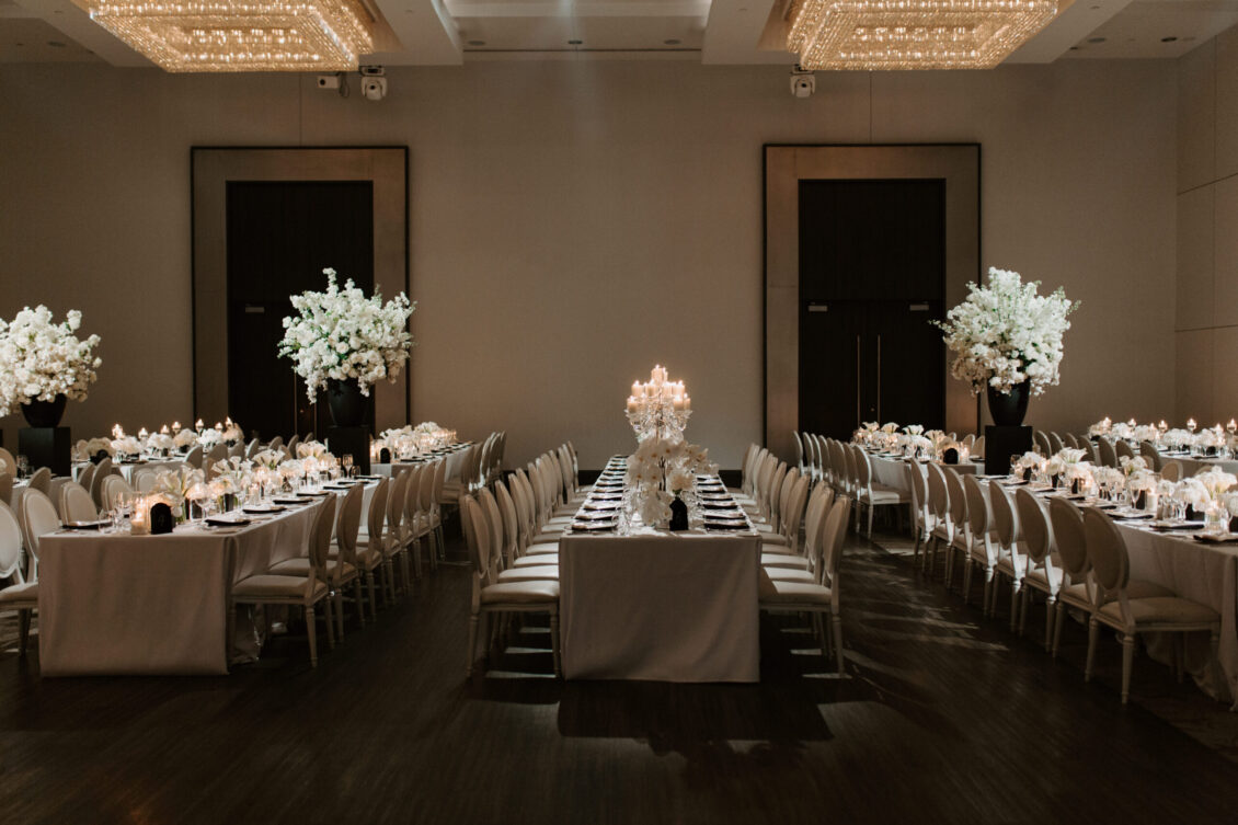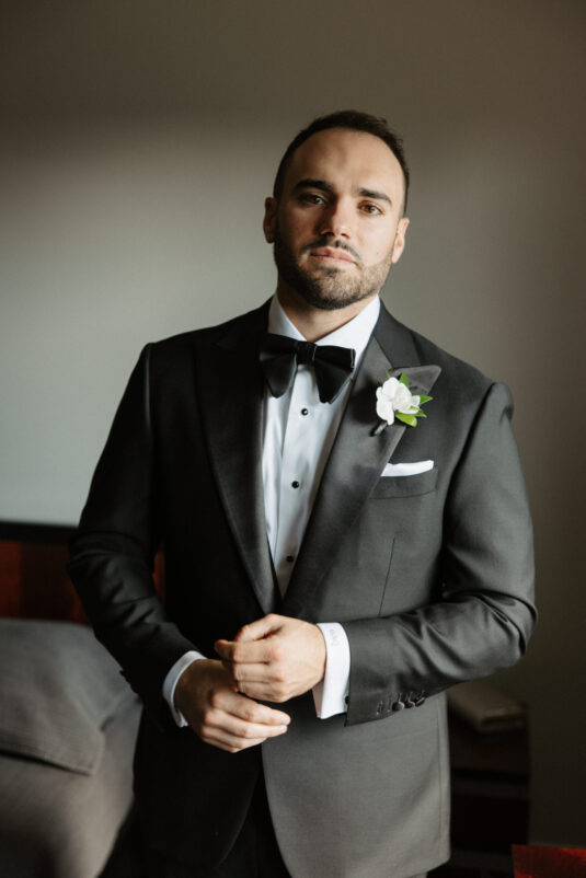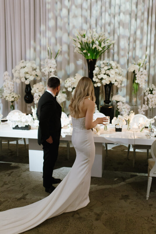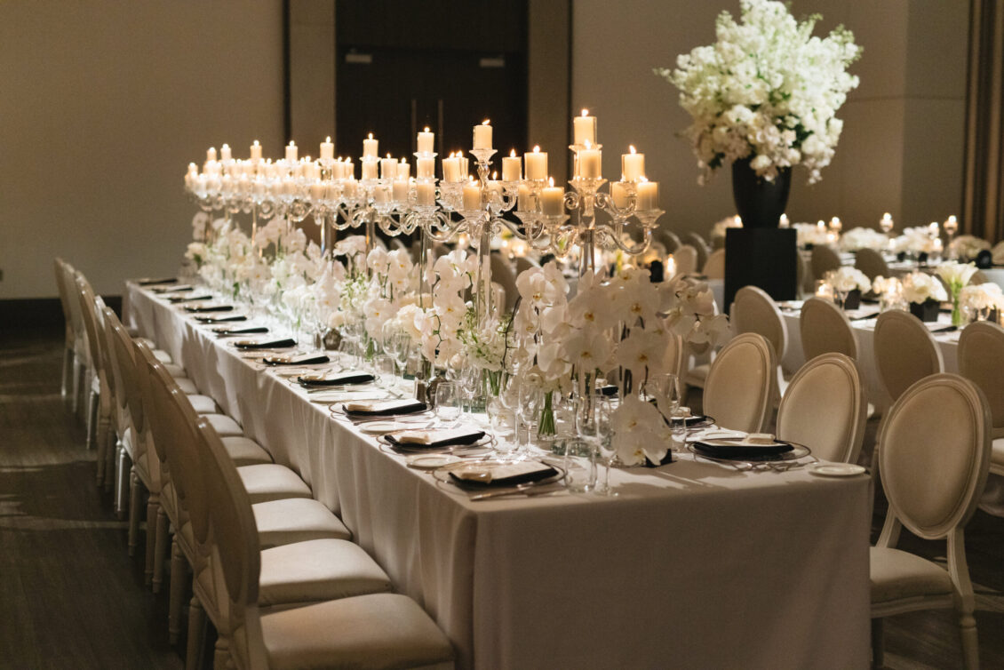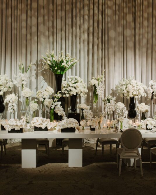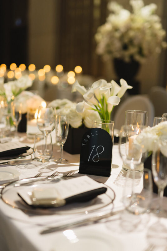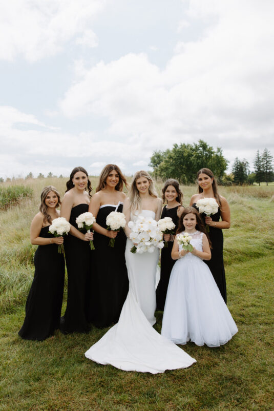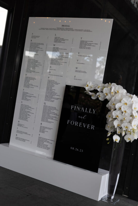 Immersed in modern black and white elegance, Alessia and William’s celebration was pure magic! Sleek black accents adorned the tables, while Wild Theory Floral wowed the couple (and guests alike!) with cascading orchids, sculpted calla lilies, and ranunculus. As the evening unfolded, guests were transported “back home” to the Italian countryside with caciocavallo, wine, peaches, grilled lamb chops, and authentic gelato. Scroll down to peek inside their intimate, romantic wedding!
