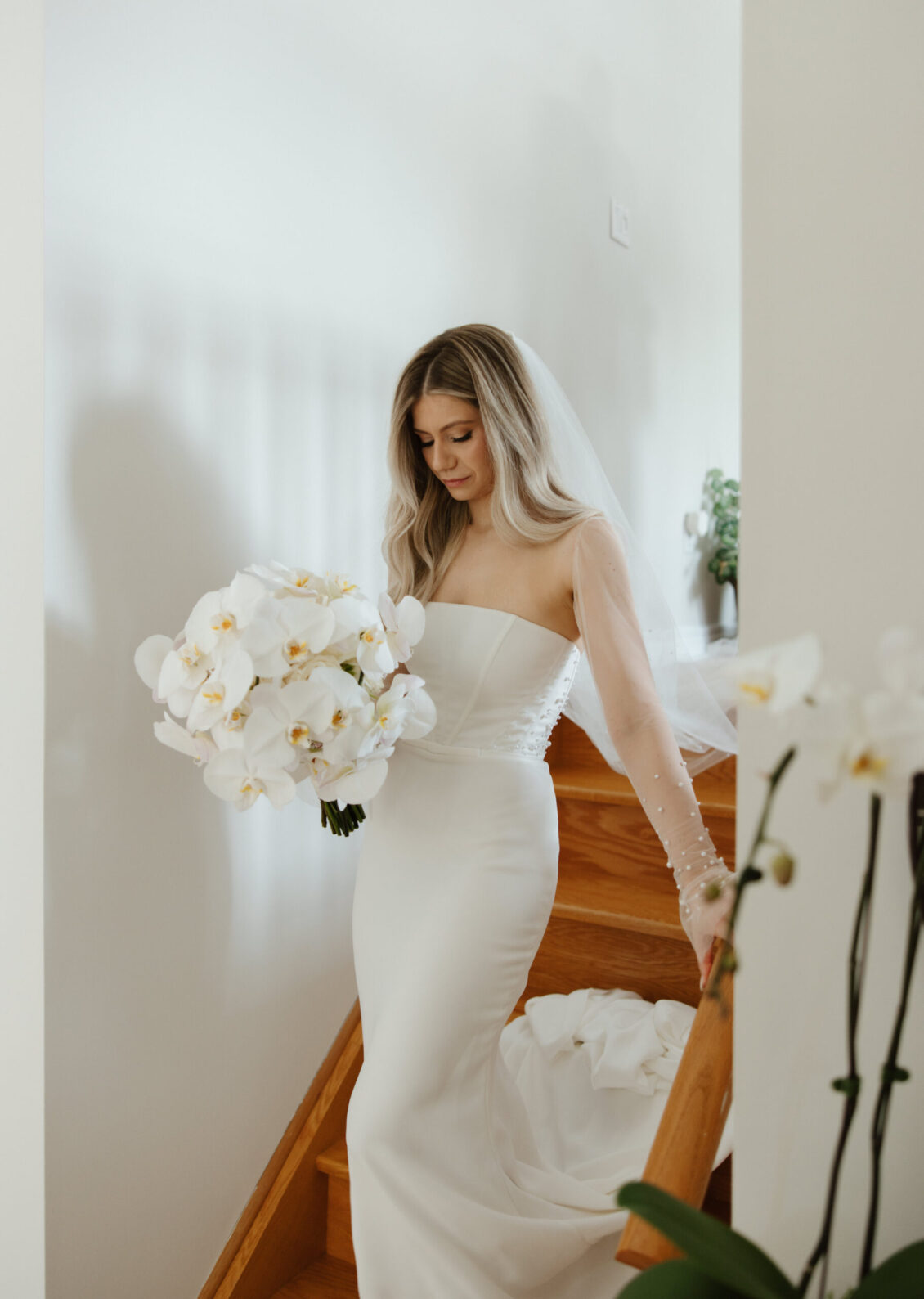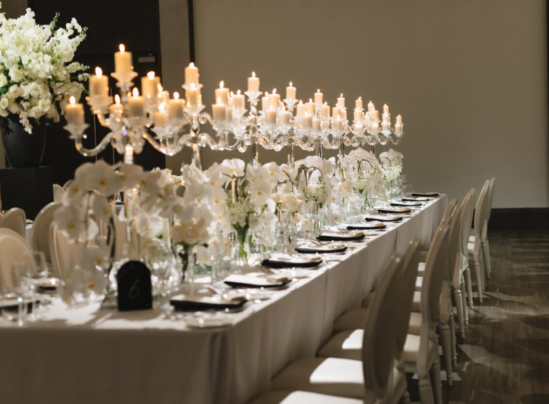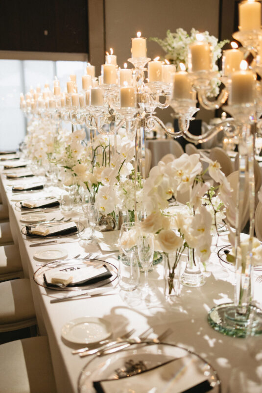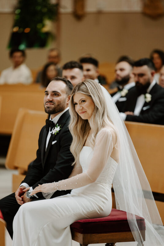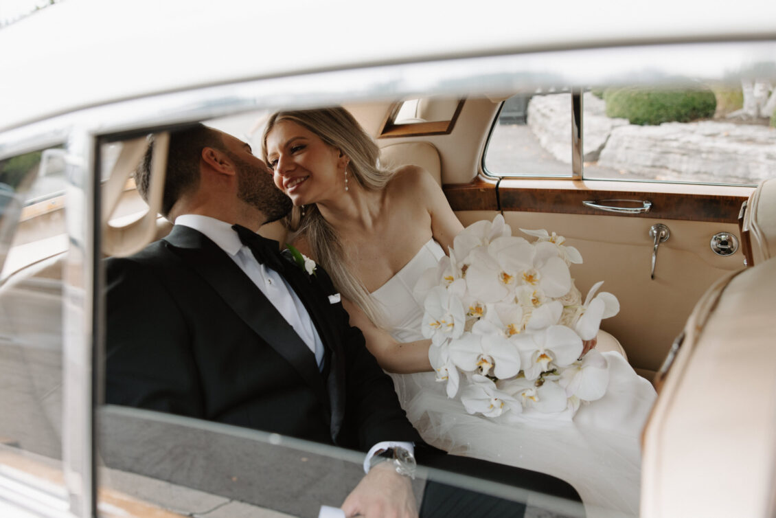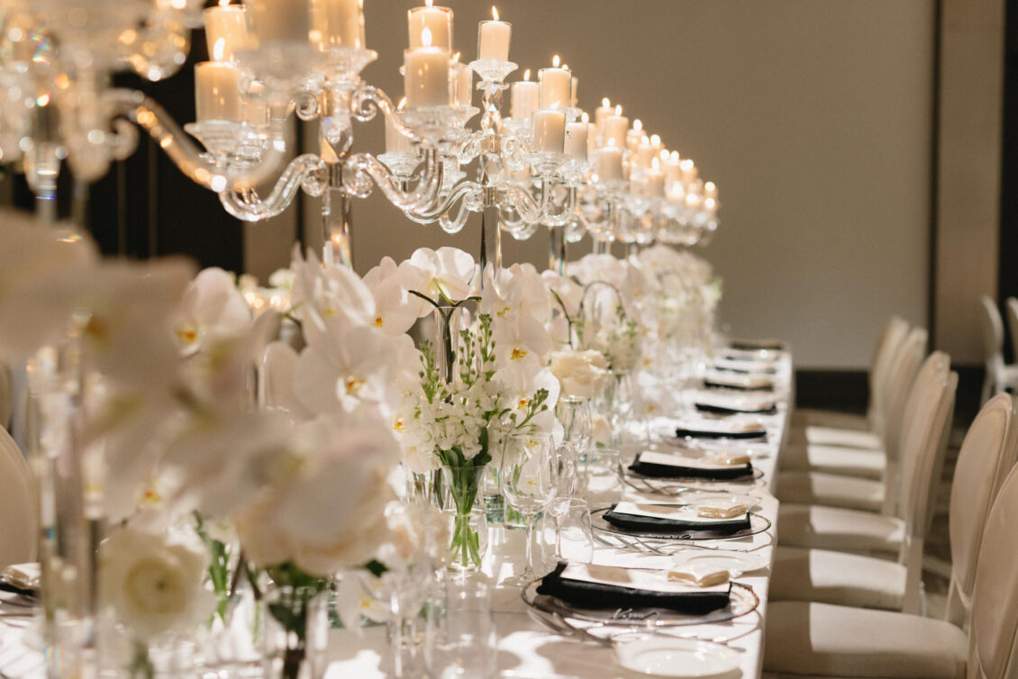 Immersed in modern black and white elegance, Alessia and William’s celebration was pure magic! Sleek black accents adorned the tables, while Wild Theory Floral wowed the couple (and guests alike!) with cascading orchids, sculpted calla lilies, and ranunculus. As the evening unfolded, guests were transported “back home” to the Italian countryside with caciocavallo, wine, peaches, grilled lamb chops, and authentic gelato. Scroll down to peek inside their intimate, romantic wedding!